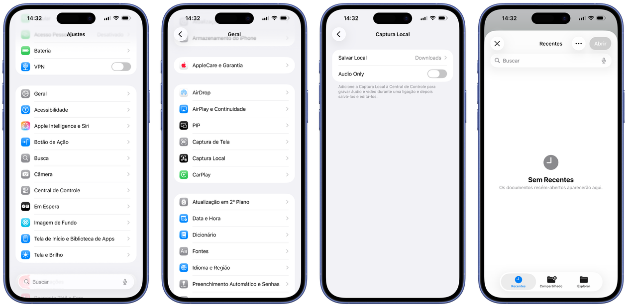 O iOS/iPadOS 26.1 trouxe um novo ajuste relacionado às gravações de capturas locais de áudios e vídeos durante chamadas telefônicas. Agora, você pode especificar um local que será utilizado para salvar as gravações realizadas.