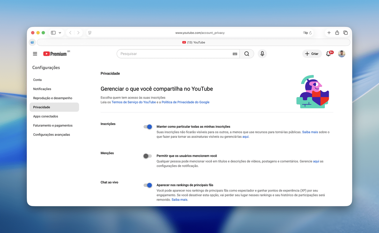 Pois saiba que é possível ocultar quais canais você segue, para que eles não sejam exibidos por quem visitar o seu perfil.
