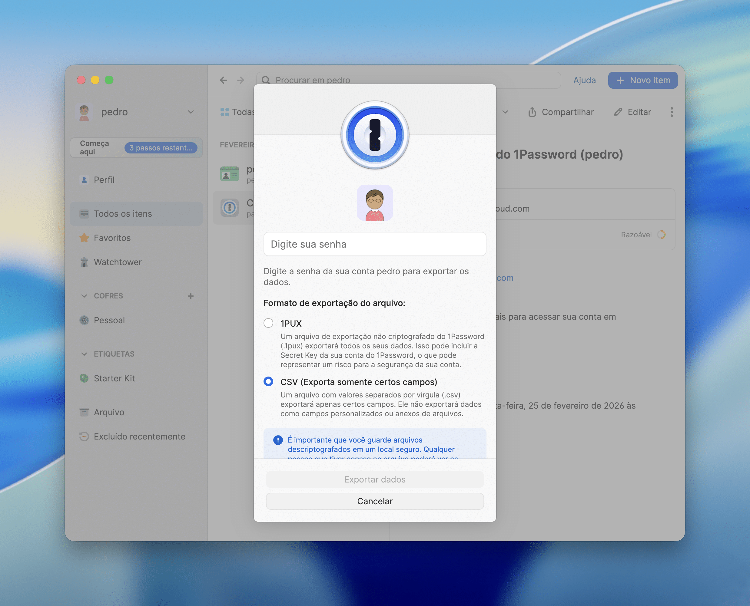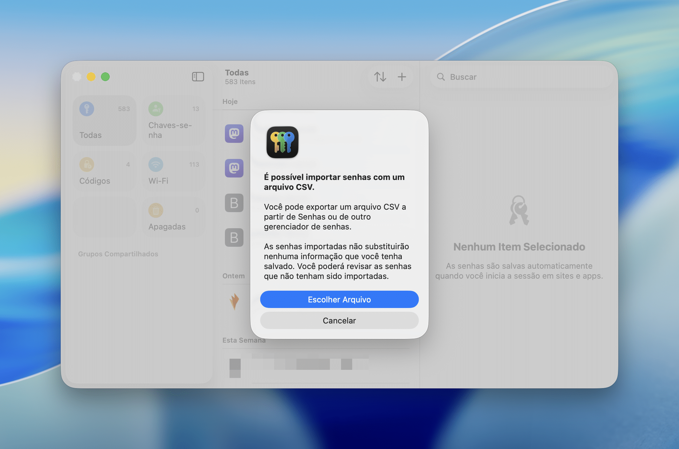 Clique em “Escolher Arquivo” e escolha aquele que foi exportado em CSV do 1Password.