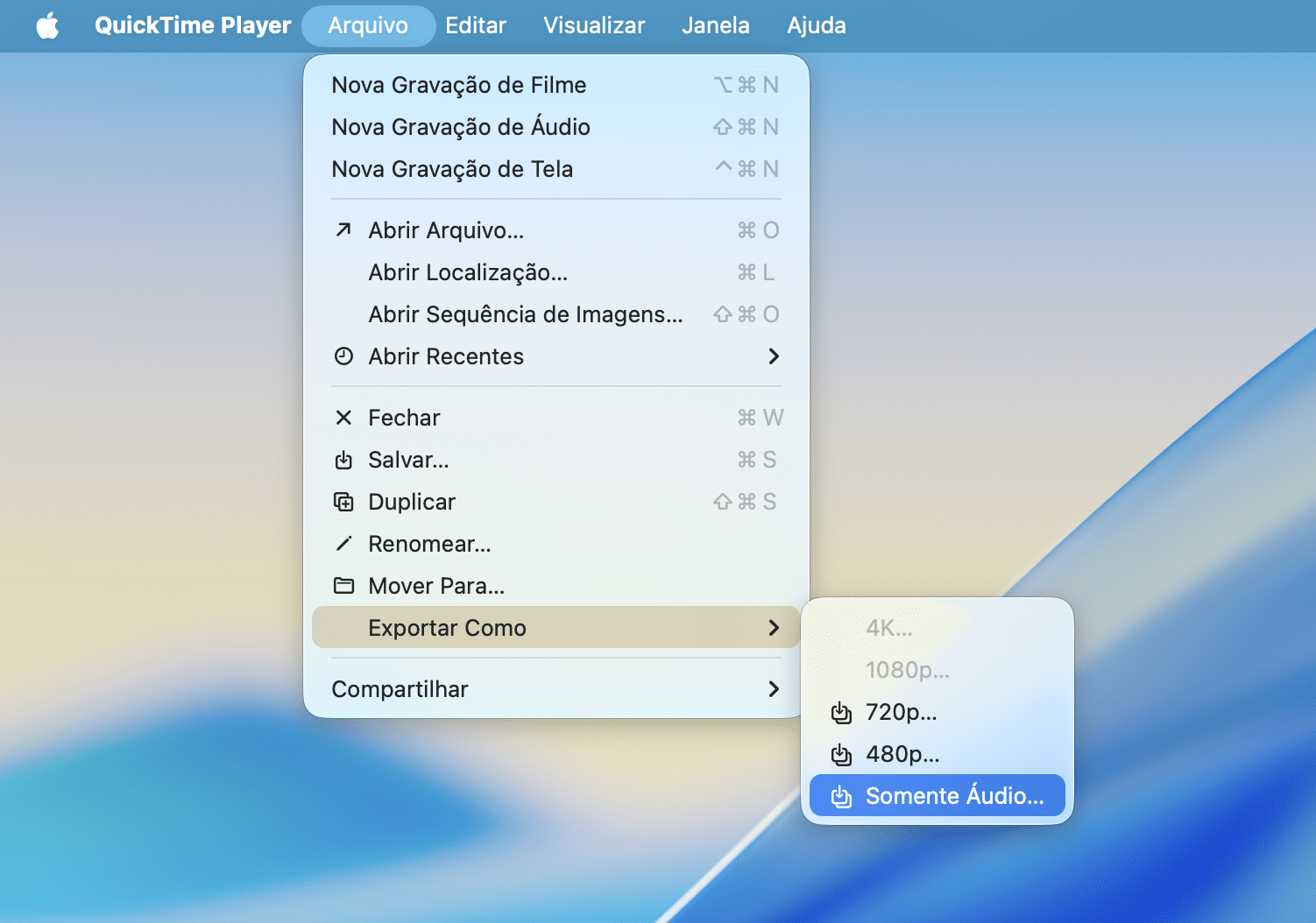 Pedro Henrique Nunes03/07/2025 • 07:30- Com o QuickTime aberto, vá até Arquivo » Abrir Arquivo…, na barra de menus, ou utilize o atalho de teclado ⌘ command O.