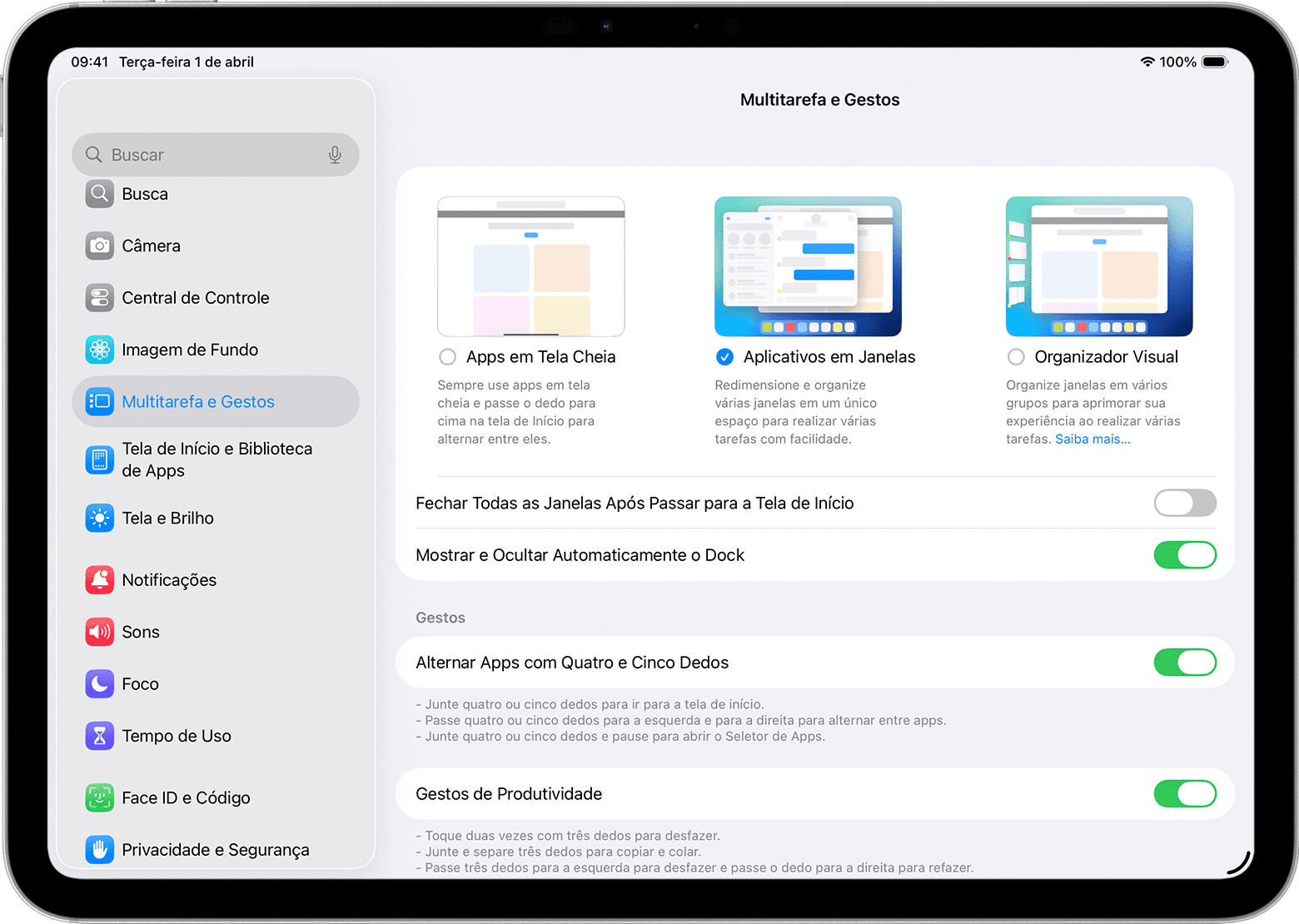 - Toque em “Multitarefa e Gestos”, na barra lateral esquerda.