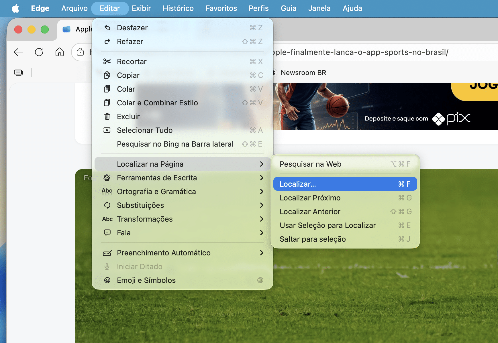 Como fazer uma busca em um site usando o navegador Edge no Mac