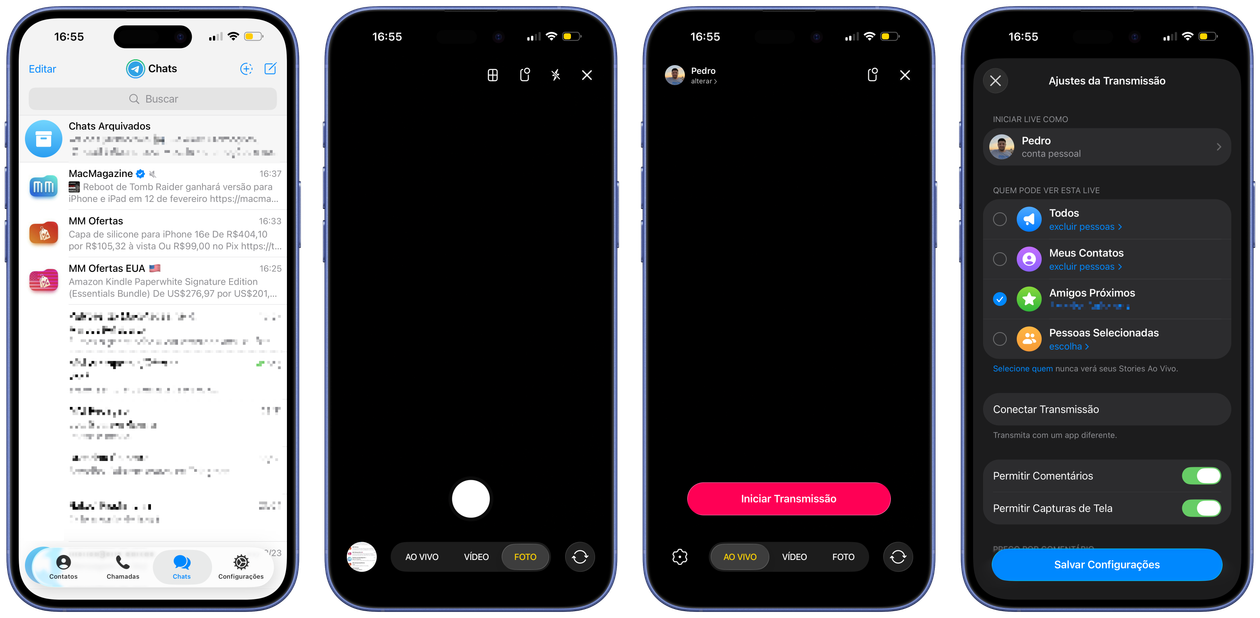 As lives do Telegram também são compatíveis com as chaves RTMP, permitindo a geração do conteúdo de vídeo diretamente de apps externos e seguir o fluxo de transmissões já existentes.