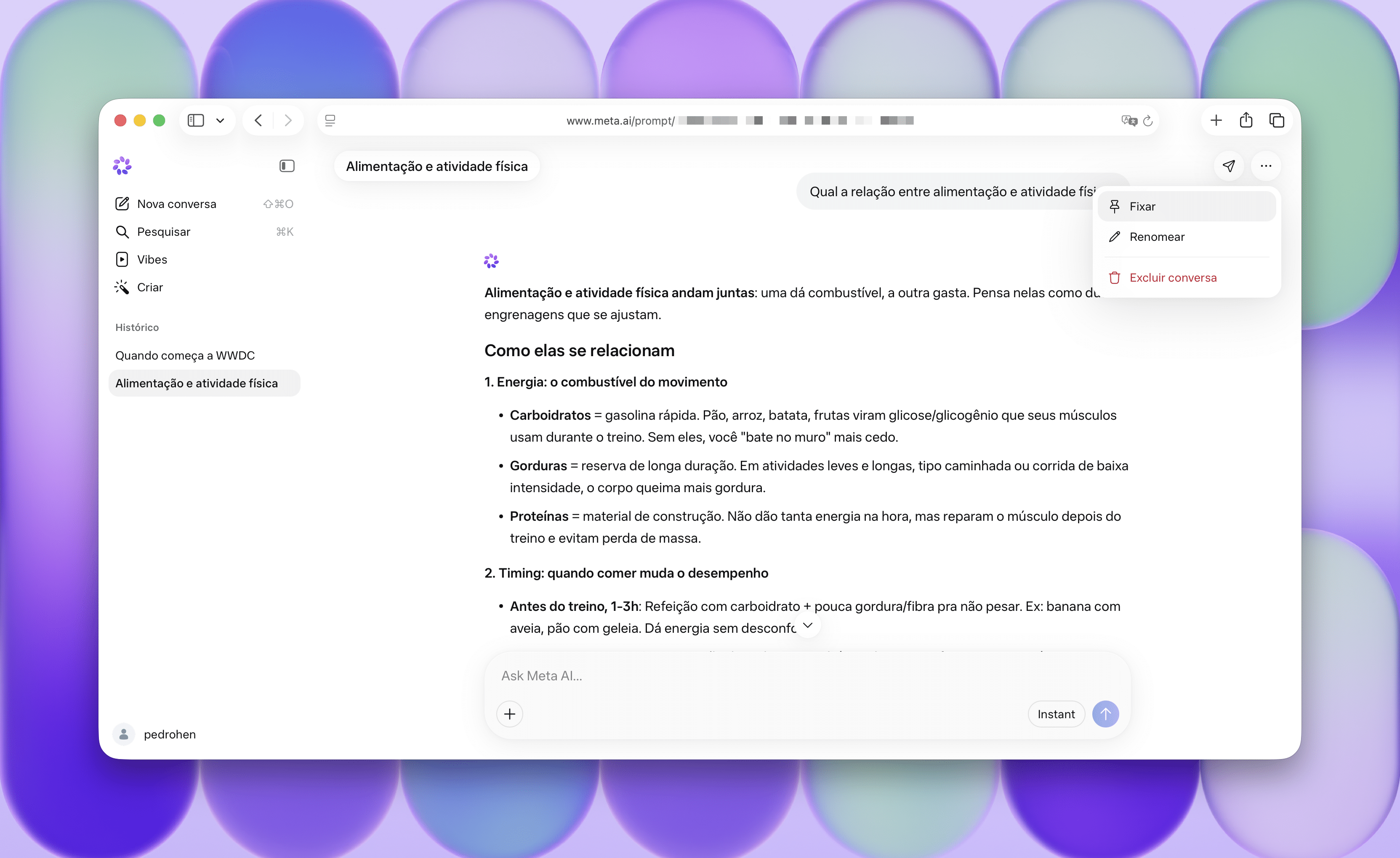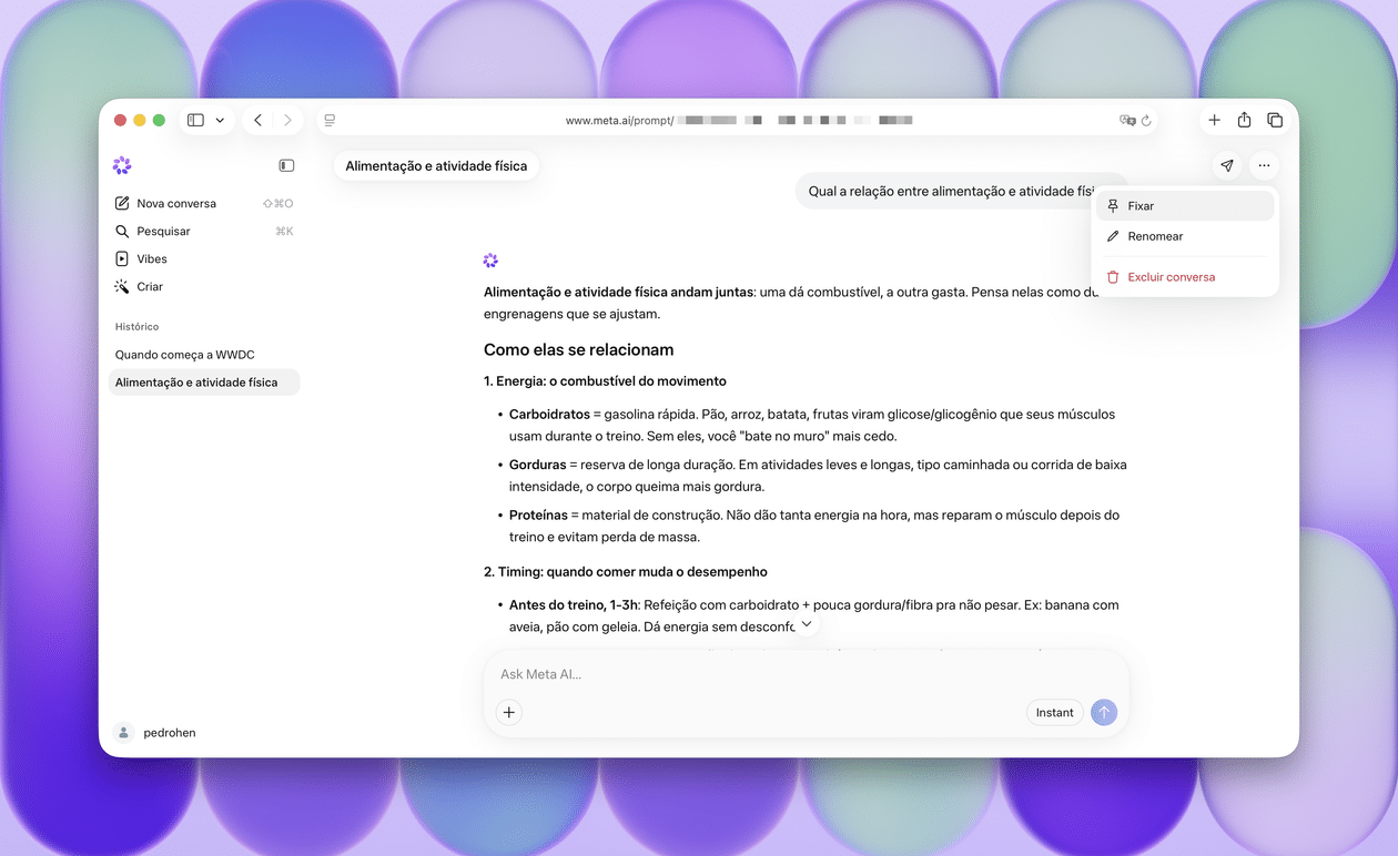 Como fixar uma conversa na Meta AI pela web