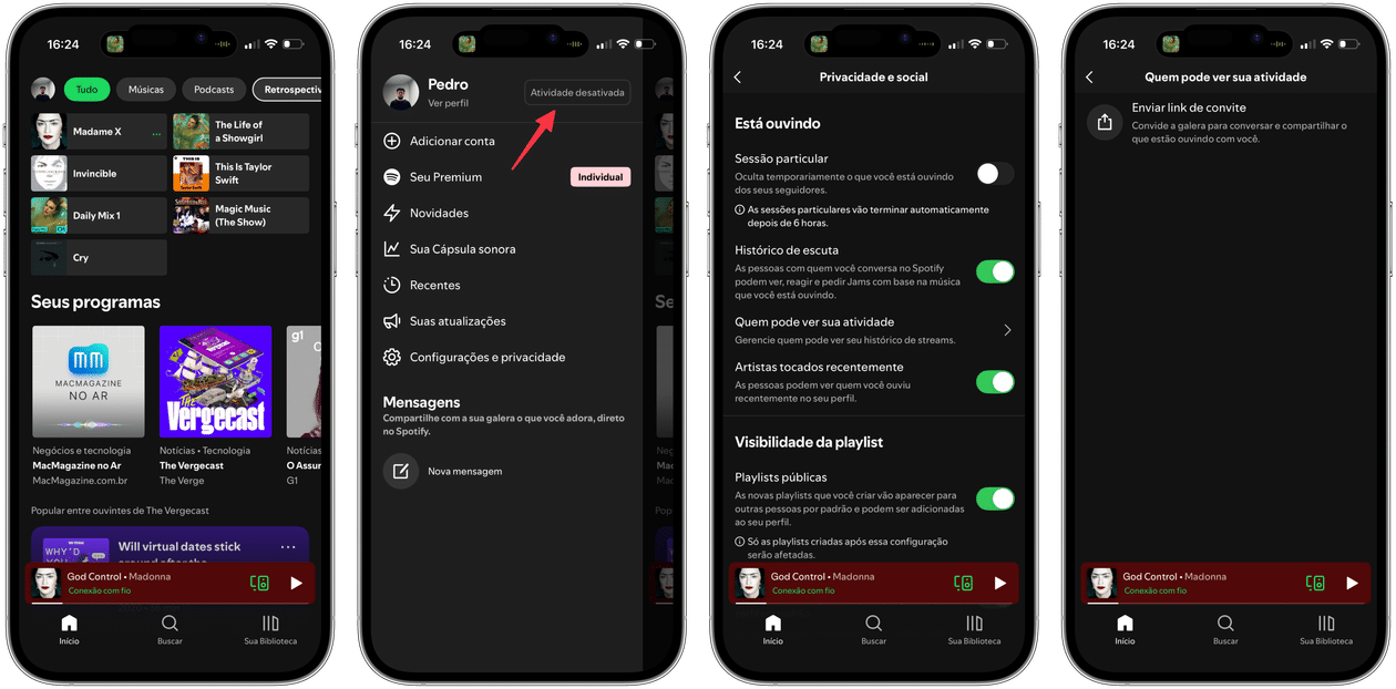 - Mais abaixo, toque em “Quem pode ver sua atividade” para fazer um ajuste granular de quem pode ou não ver o que você ouve no Spotify.