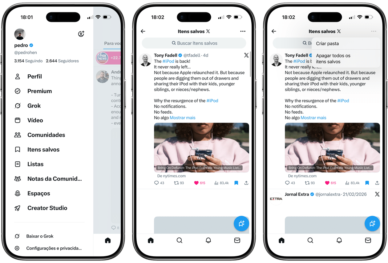Caso possua uma extensa lista desses itens salvos e queira começar do zero, o X possibilita fazer isso a um toque de distância, usando o aplicativo para iPhones e iPads.