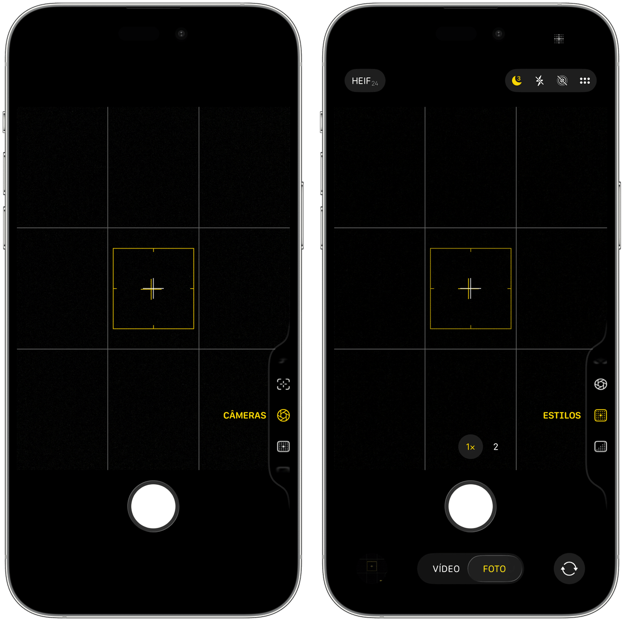 Feito isso, sempre que você usar o Controle da Câmera, os elementos seguirão aparecendo na tela — como podemos ver no antes e depois a seguir: