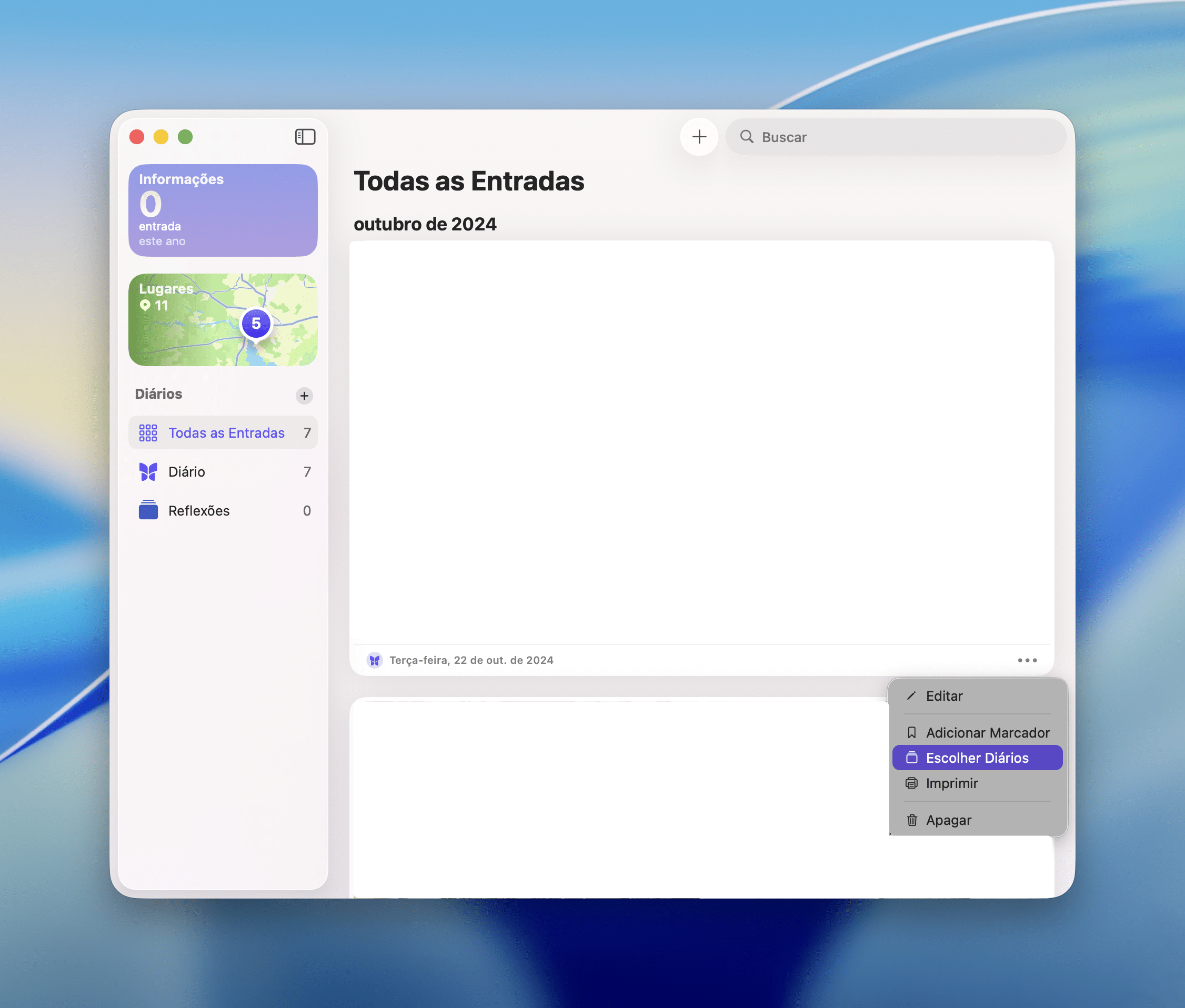 O aplicativo Diário (Journal) ganhou algumas boas novidades recentemente, como a possibilidade de criar múltiplos diários — ideal para separá-los por assuntos ou categorias, por exemplo.