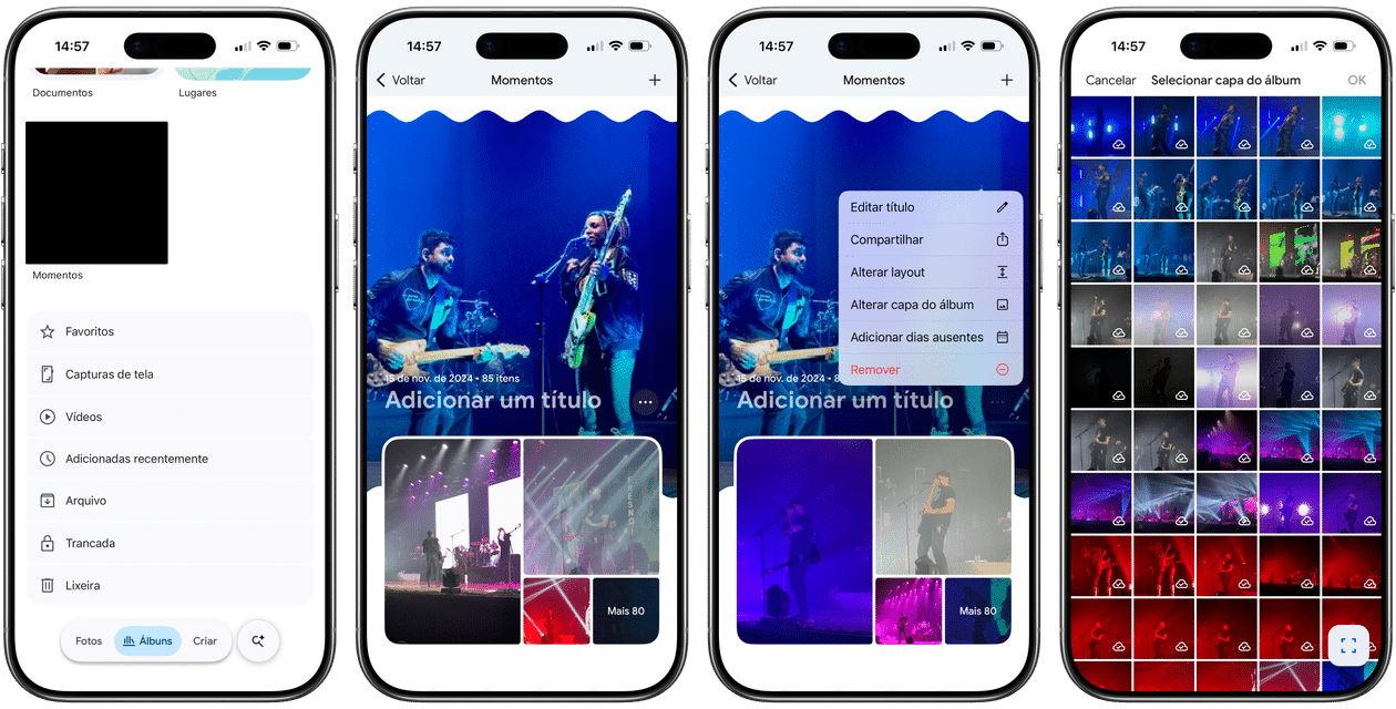 Dentre elas, há os momentos (moments), que reúnem as suas fotos e os seus vídeos por pessoas, datas especiais ou lugares em um único lugar. Caso queira, você também pode criar um momento de forma manual e até fazer outras edições, como alterar a capa do álbum.