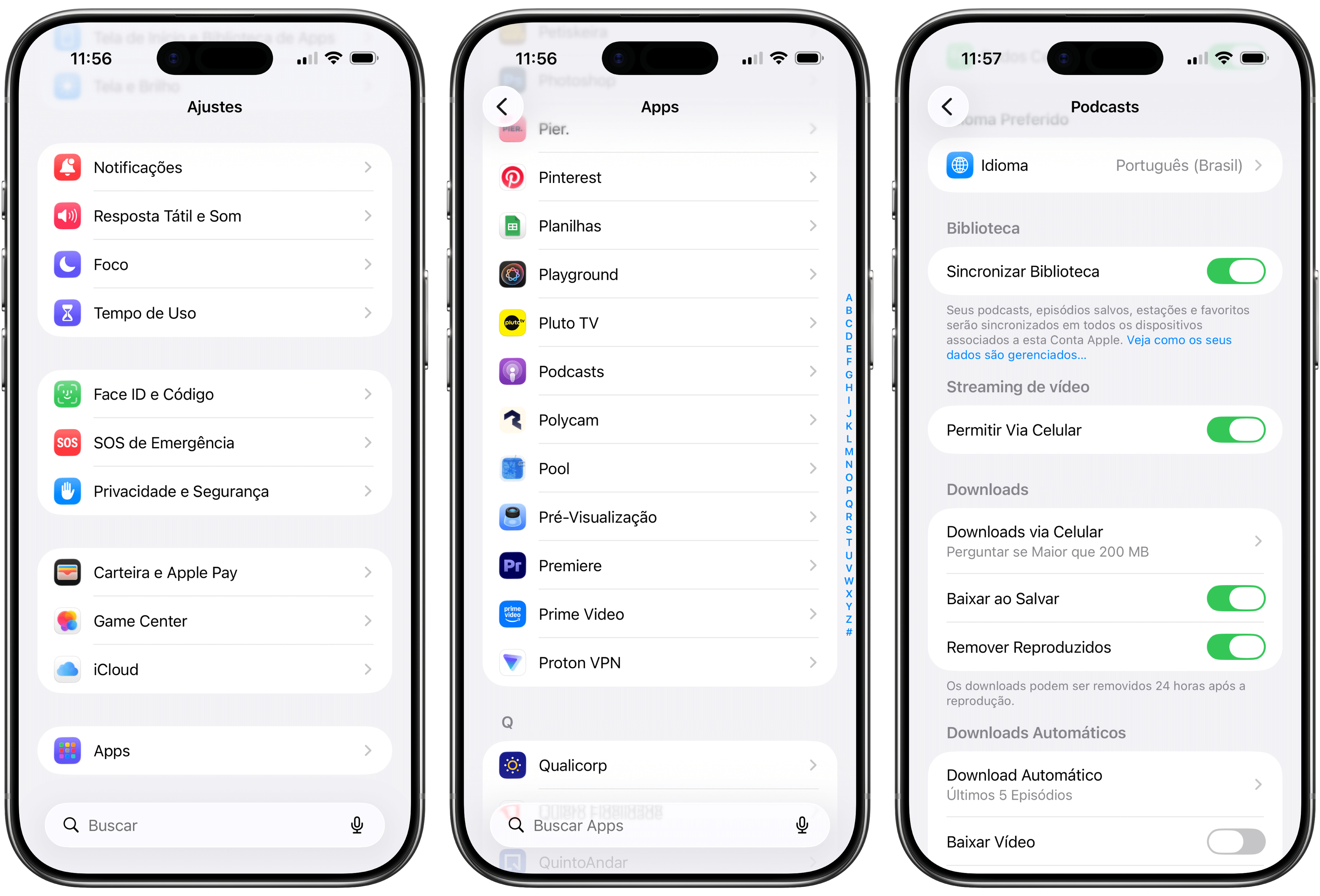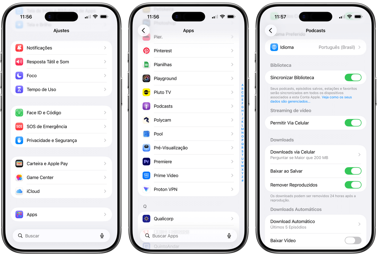 Pedro Henrique Nunes25/03/2026 • 08:00Abra os Ajustes (Settings), toque em “Apps” e vá em “Podcasts”.