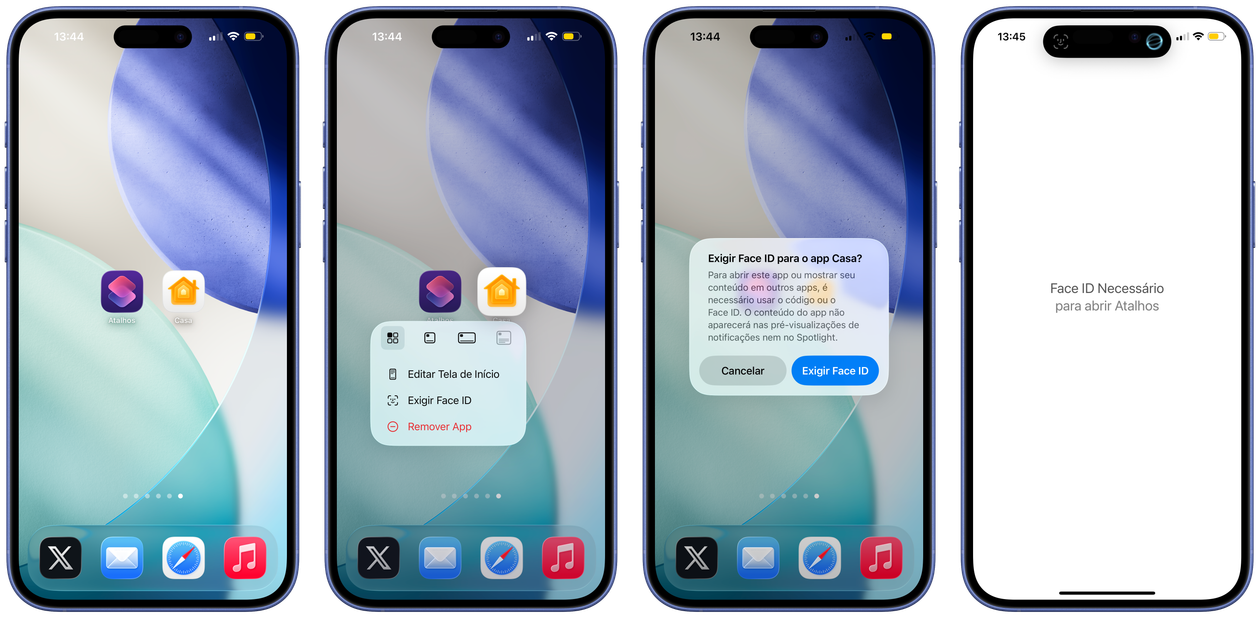 Pouca gente já se deu conta disso, mas a Apple não permite (na teoria) que os usuários de iPhones e iPads bloqueiem o aplicativo Atalhos (Shortcuts) usando o Face ID ou Touch ID — como é possível em praticamente qualquer app instalado.