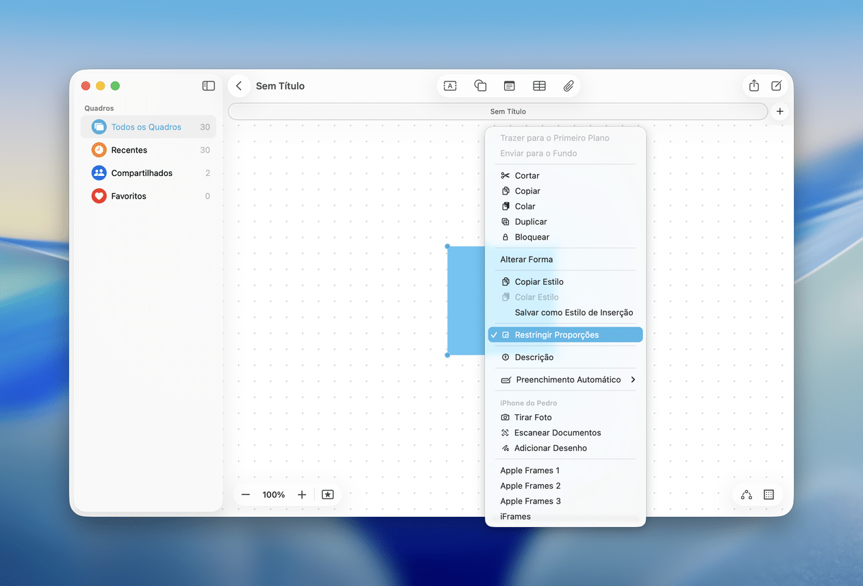 Como ativar a restrição de proporção de itens no Freeform pelo Mac
