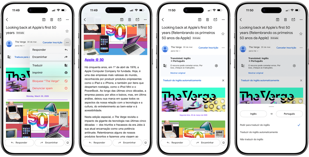 Um recurso disponibilizado pelo Google permite conferir a tradução de um email — ideal para quem troca muitas mensagens ou assina alguma newsletter em idiomas diferentes.