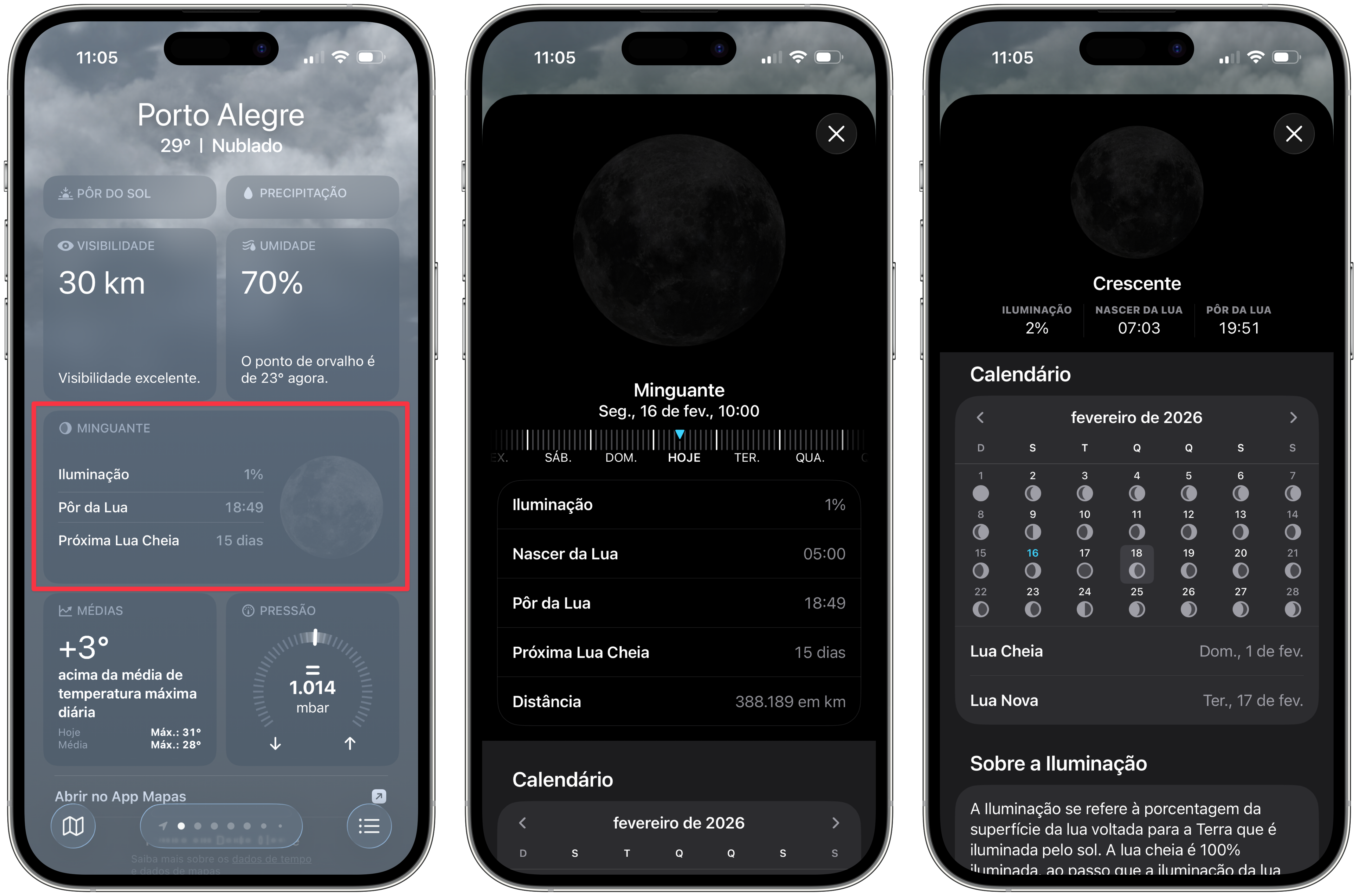 Se você é daquelas pessoas que gosta de acompanhar as fases da Lua, esse mesmo app também traz essa função. A seguir, veja como visualizar esses detalhes no seu iPhone, iPad e Mac! 🌑