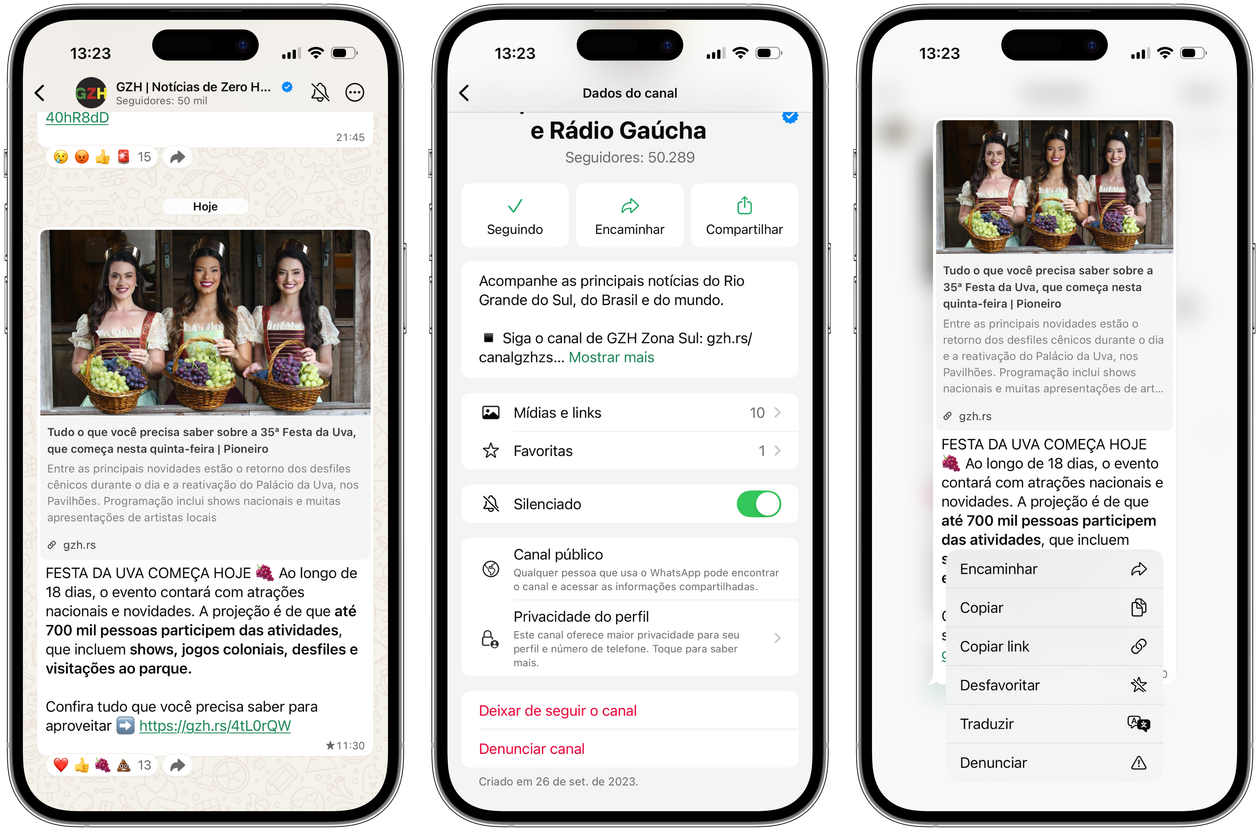 Pedro Henrique Nunes23/10/2023 • 07:40- Com o app do WhatsApp aberto no seu iPhone, iPad ou Mac (na web, ao menos por enquanto, não é possível fazer isso), toque/clique em cima do canal desejado na aba dedicada.