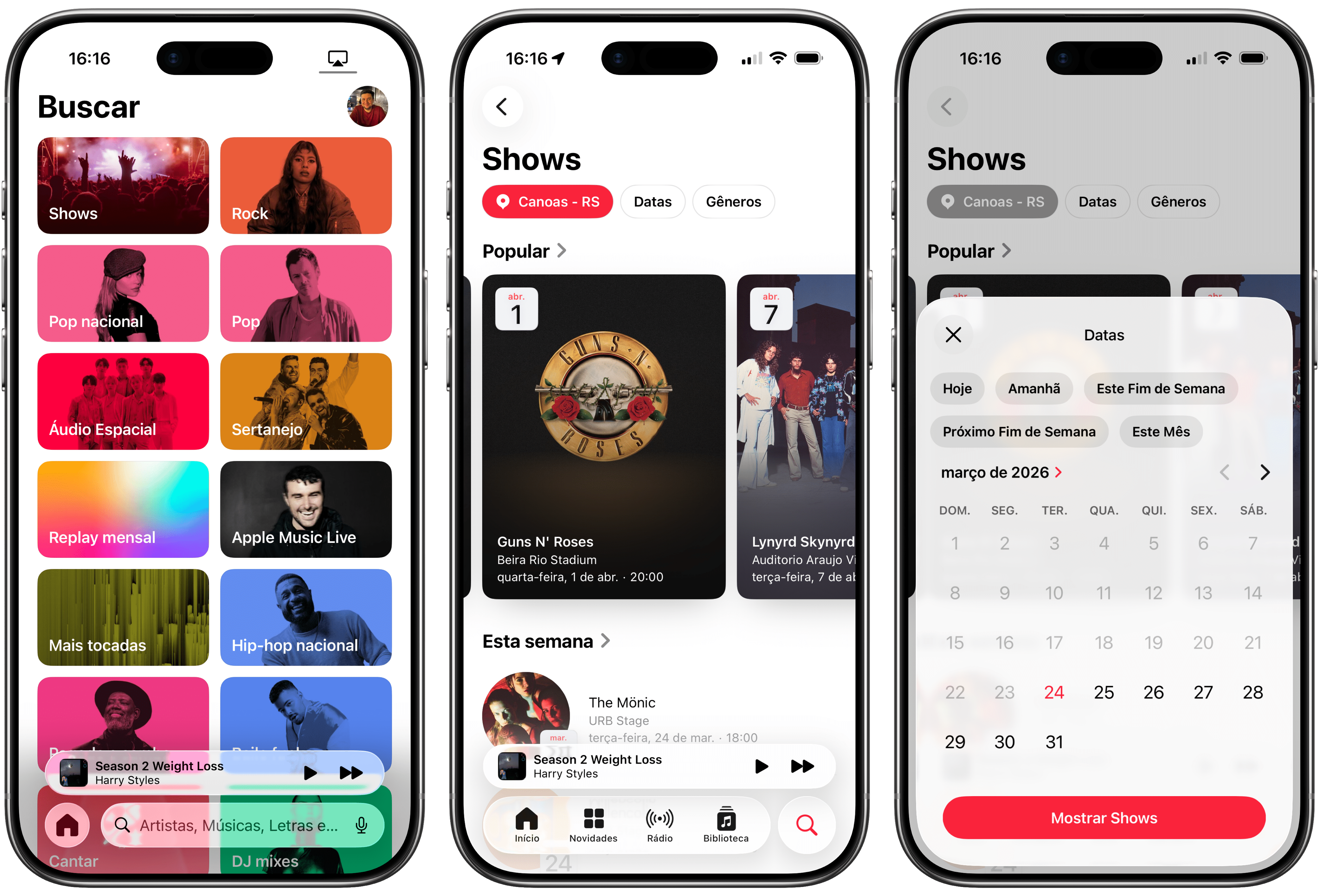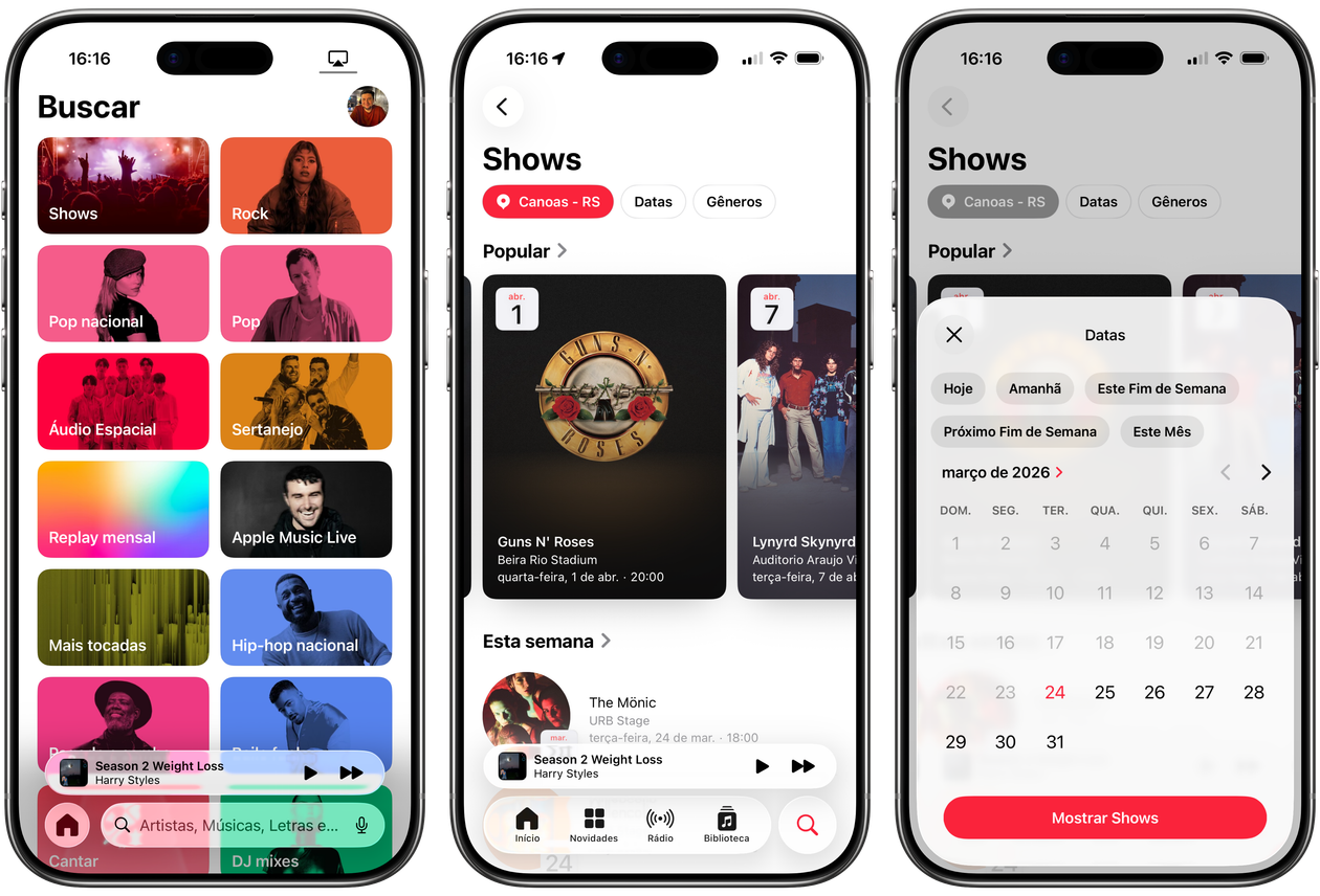 Você também pode selecionar a aba de busca e ir até a seção “Shows” para conferir todos os eventos programados para a sua localização.