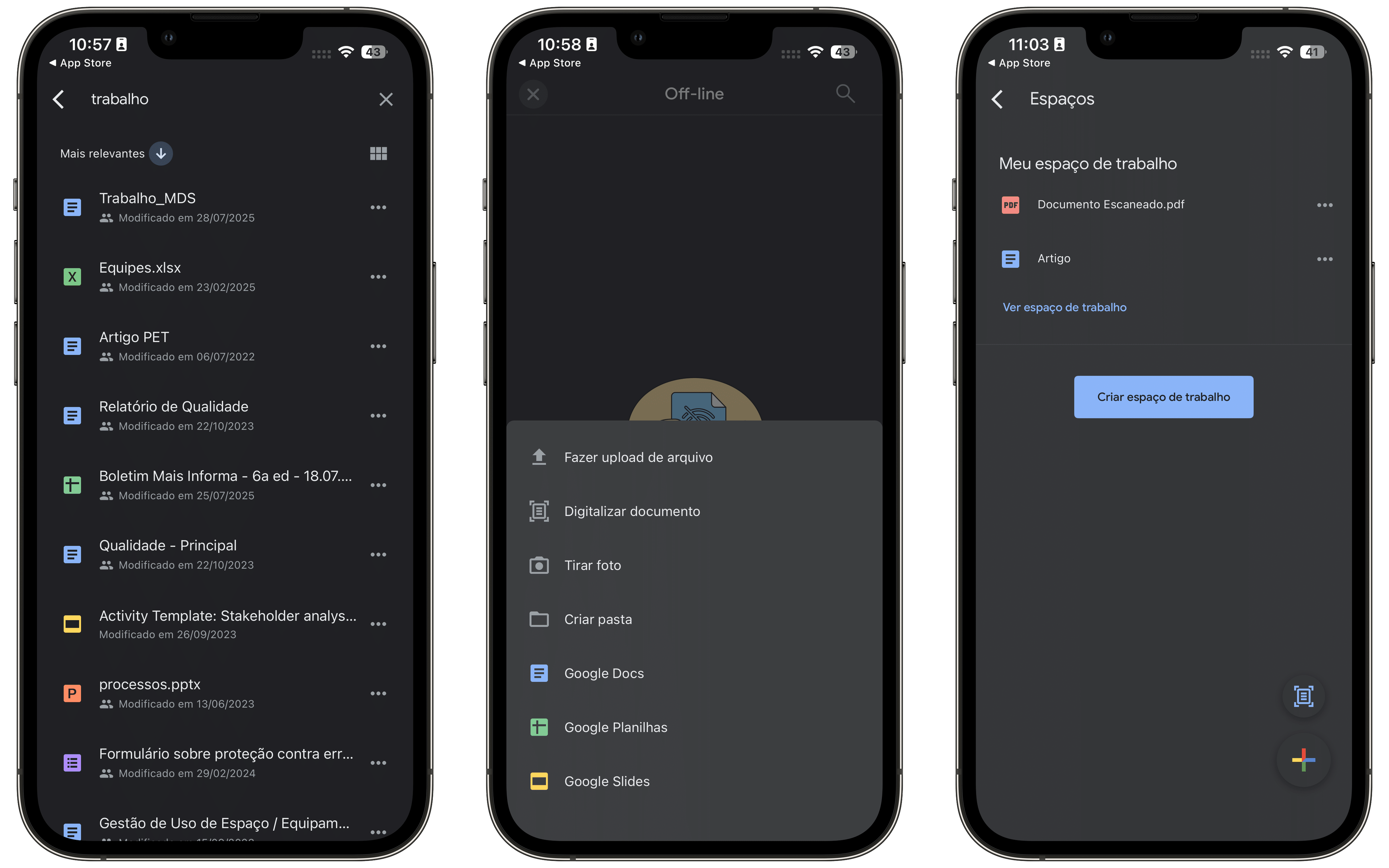 O Google Drive também tem os chamados espaços, que são fortemente integrados a apps do Google Workspace e a produtos de terceiros para que equipes possam trabalhar, tomar decisões, publicar avisos e discutir ideias.