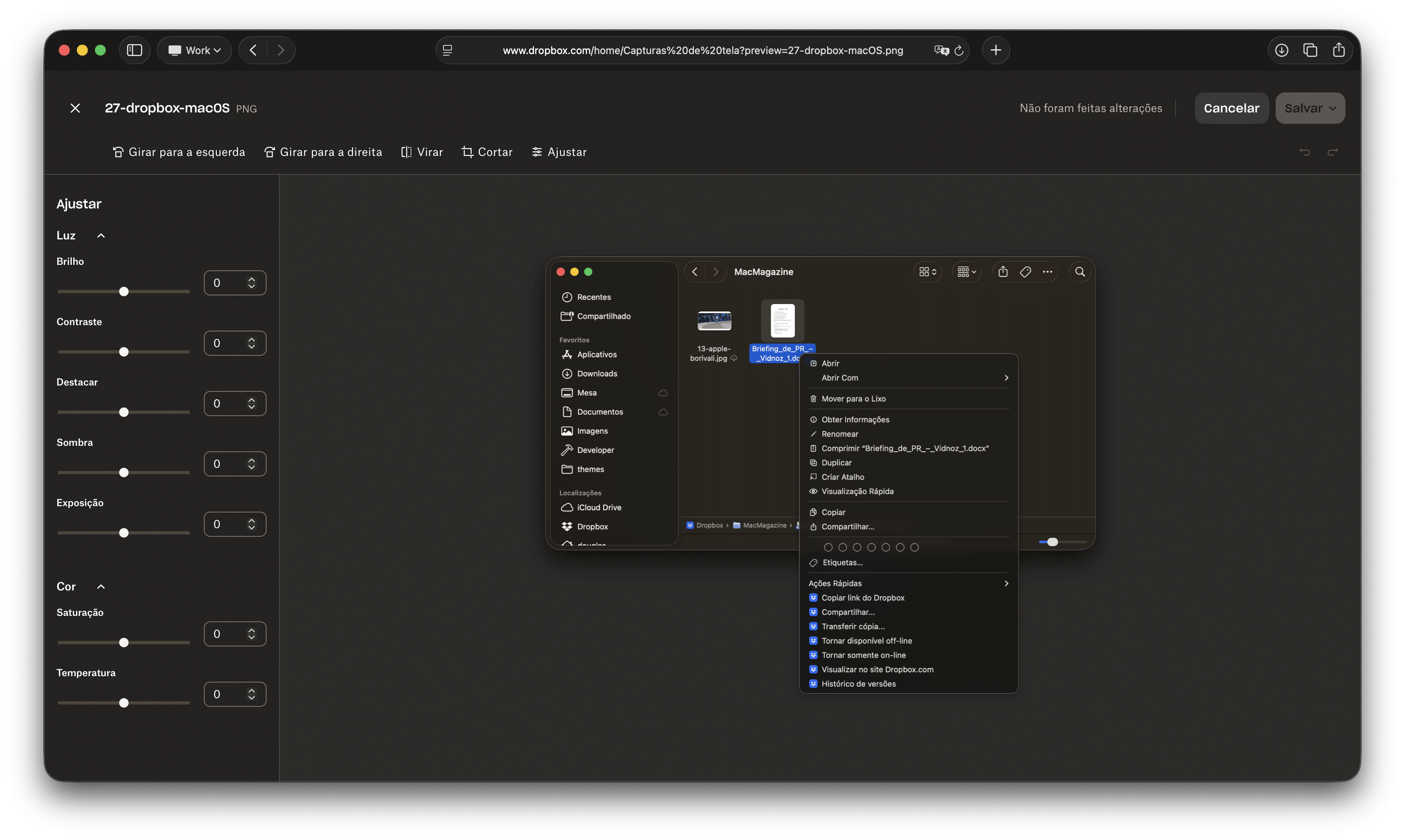 Sua versão web, a exemplo da do Google Drive, é bem completa e fluida (inclusive com funcionalidades básicas de edição de foto e vídeo) — uma grata surpresa para mim, que nunca tinha usado a plataforma antes para além de baixar um ou outro arquivo que alguém tinha compartilhado.