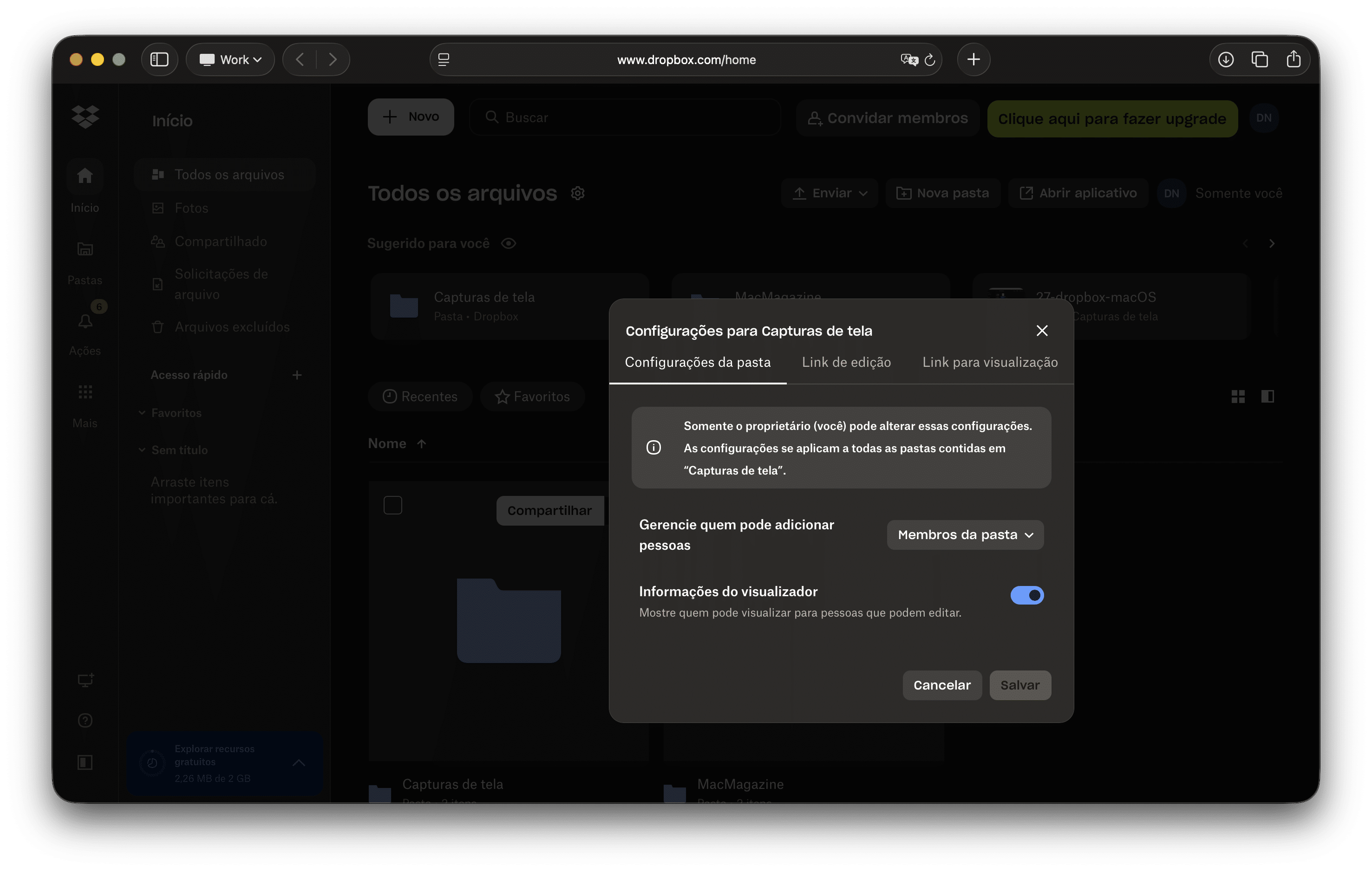 Além disso, em termos de compartilhamento (falaremos mais um pouco adiante), o Dropbox oferece recursos avançados como proteção por senha e datas de expiração para links, dando ao usuário um maior controle absoluto sobre o conteúdo armazenado.