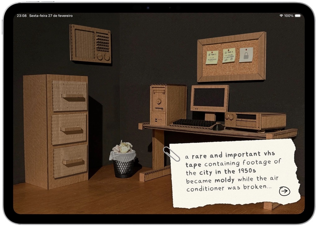 Desenvolvido a partir de cenários físicos em miniatura animados em stop motion e integrados à interface digital, o projeto é inspirado no Museu da Imagem e do Som de Campinas e traz uma camada crítica dos desafios enfrentados por instituições culturais públicas no Brasil.