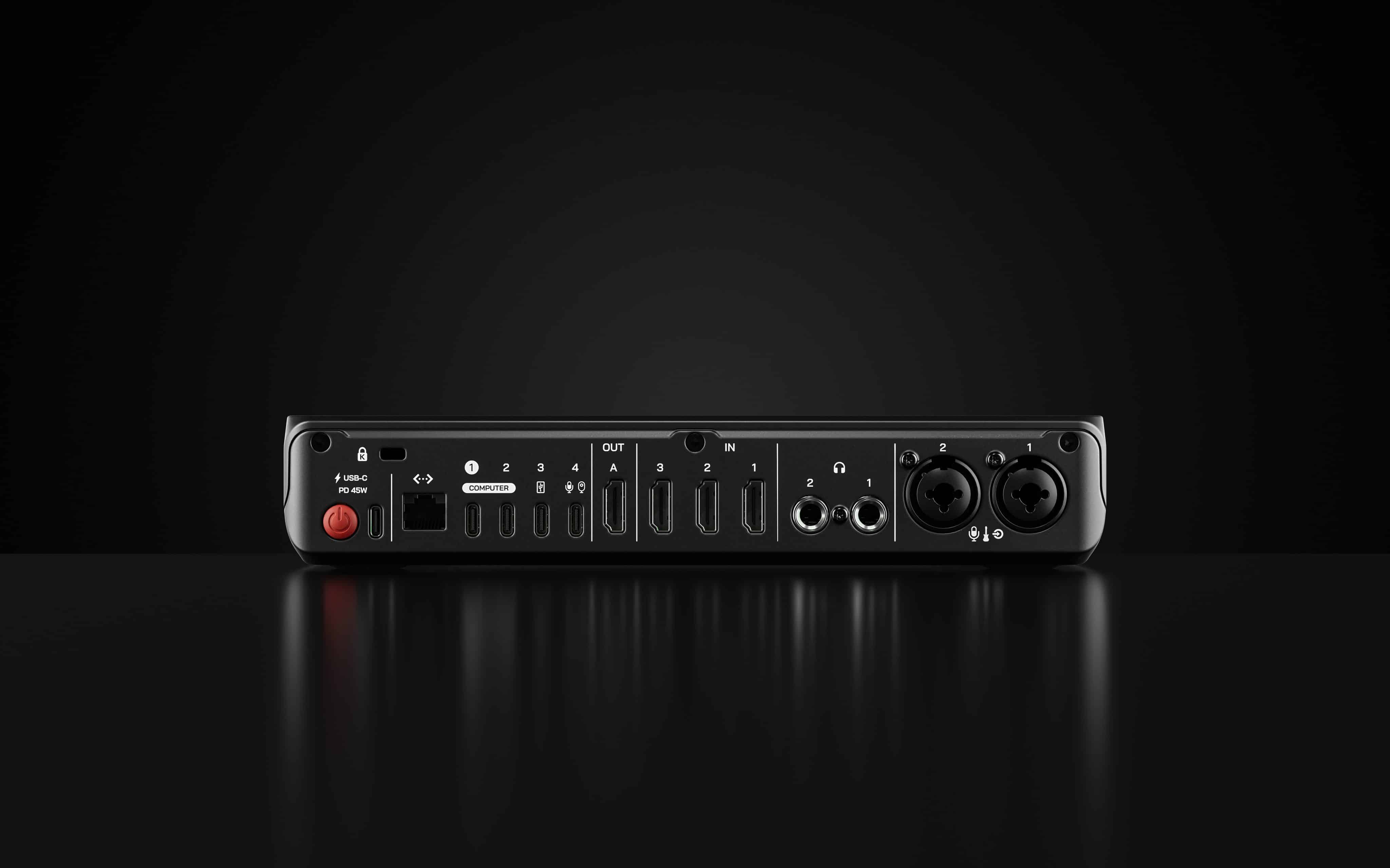 Em termos de conectividade, o novo console vem com quatro portas HDMI, sendo três de entrada e uma de saída (para pré-visualizações). Há também duas portas USB-C compatíveis com áudio e vídeo, duas interfaces de áudio USB-C para conexão simultânea com até dois computadores/dispositivos móveis, dois combo-jacks Neutrik, uma porta Ethernet e mais.