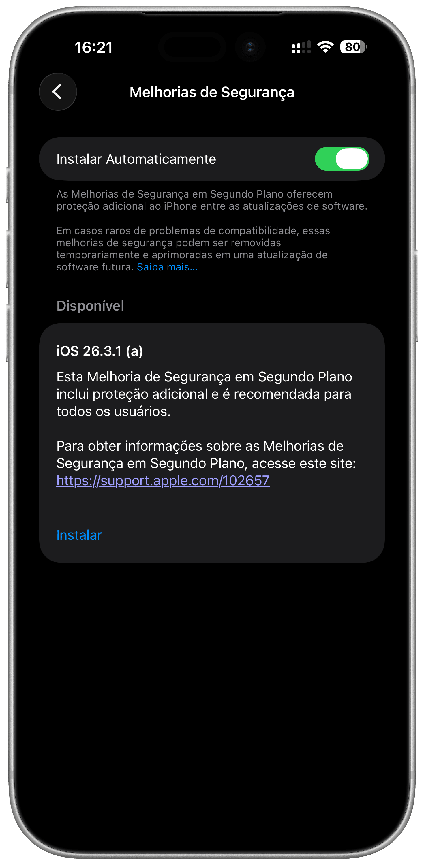 As Melhorias de Segurança em Segundo Plano podem ser visualizadas na seção Privacidade e Segurança do aplicativo Ajustes (Settings) e oferecem uma opção de instalação automática. Os usuários que optarem por não instalá-las receberão as correções em futuras atualizações de software dos sistemas operacionais.