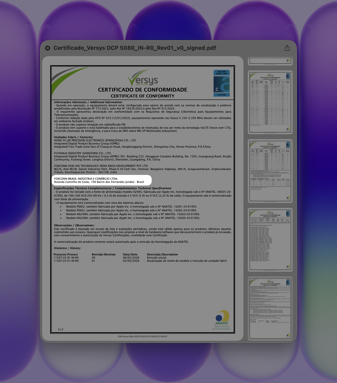 A outra é diretamente pelos documentos de homologação da Agência Nacional de Telecomunicações (Anatel), que já mostram a unidade fabril de São Paulo:
