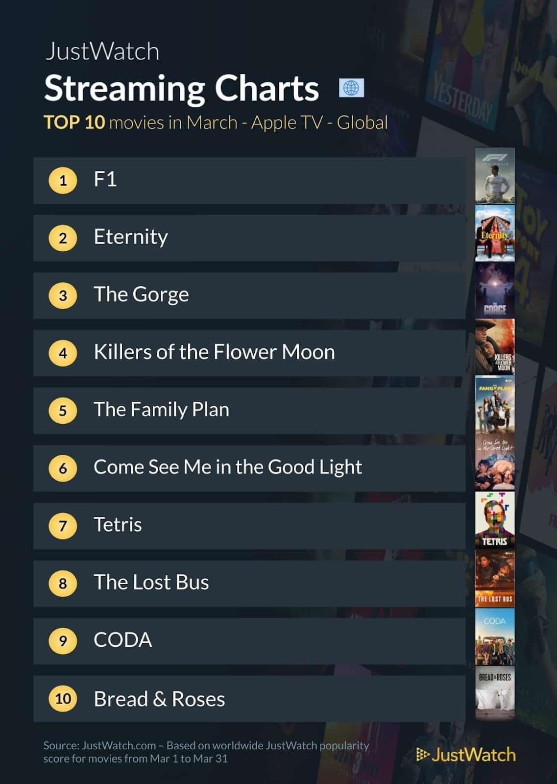 Como a Apple não costuma divulgar esses dados oficialmente, as listas do JustWatch são o retrato mais aproximado que temos dessas informações de audiência.