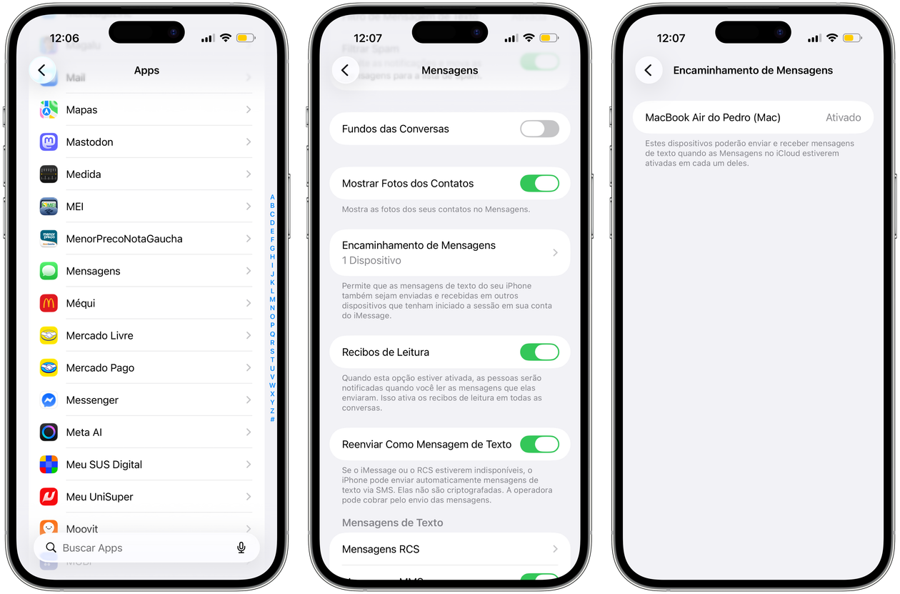 - Habilite o Encaminhamento de Mensagens no seu iPhone, indo até Ajustes » Apps » Mensagens » Encaminhamento de Mensagens.