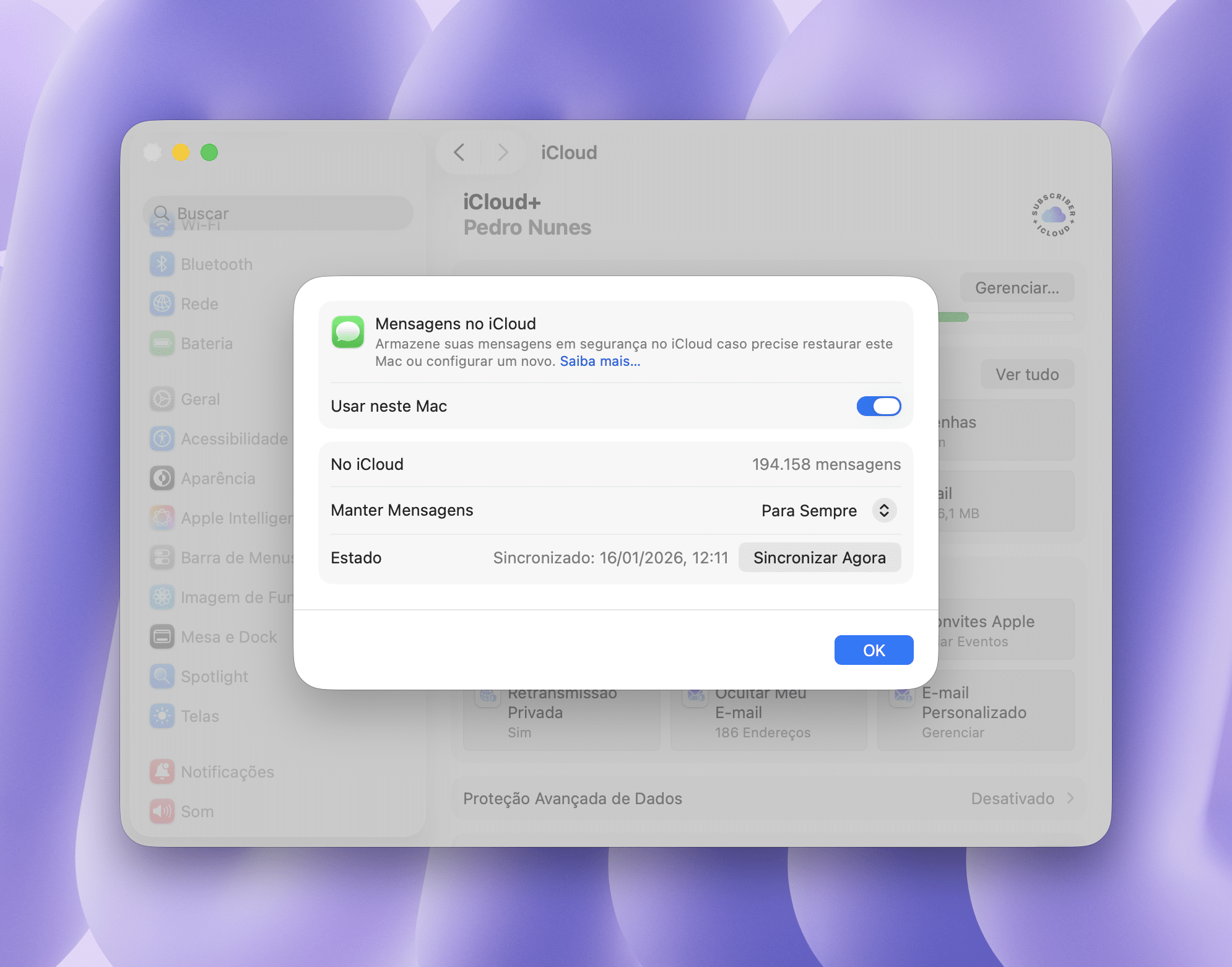 » Mensagens e habilite “Usar neste iPhone”. - No Mac: abra os Ajustes do Sistema, clique no seu nome (na parte superior esquerda) e em “iCloud”. Acesse “Mensagens” e habilite “Usar neste Mac”.