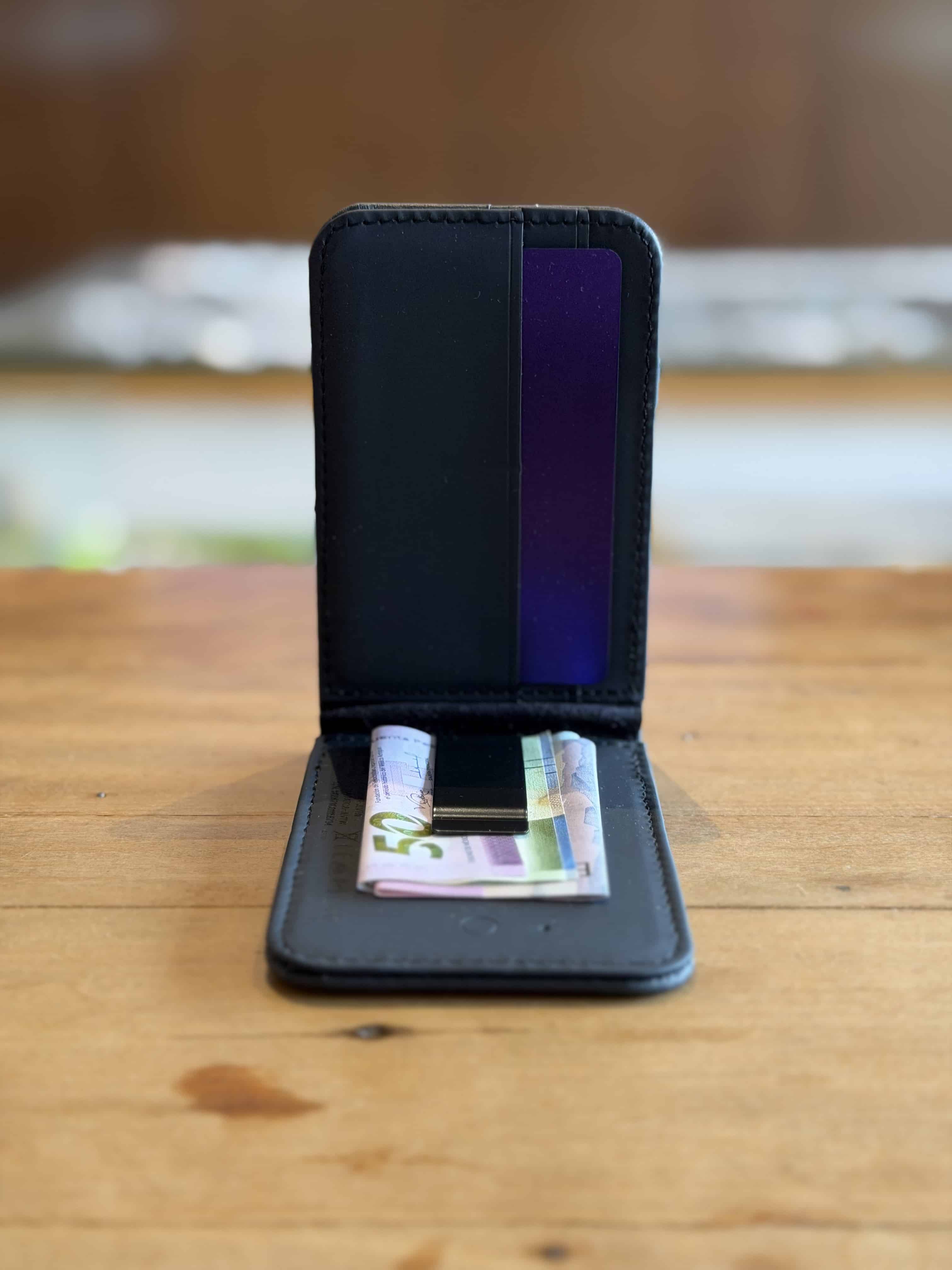 Testei ela por várias semanas e adorei essa versatilidade toda oferecida, podendo realmente substituir uma carteira tradicional completa. Por outro lado, o problema é justamente isso: por conseguir substituir uma carteira tradicional completa, ela é bem parruda, o que incomoda na hora de colocar no bolso. Além disso, se você preencher todos os espaços dos cartões e colocar dinheiro dentro, ela fica ainda mais espessa e pesada (sem nada dentro, são 94 gramas) — ou seja, usar o iPhone com ela na traseira dele não é das tarefas mais agradáveis.