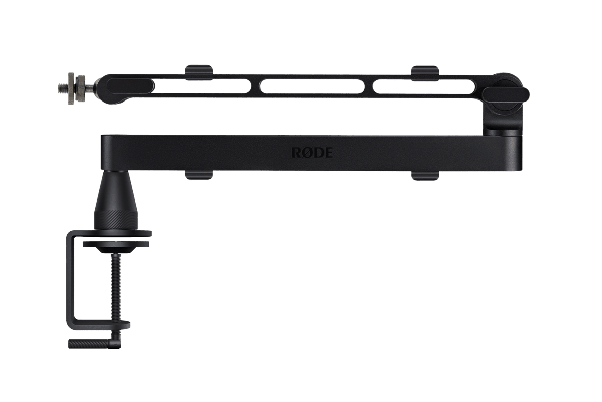 Fixado à mesa através de um grampo, ele conta com um gerenciamento integrado que mantém os cabos XLR e USB bem escondidos, ao passo que proporciona um espaço de trabalho limpo e organizado e oferece total liberdade de movimento.