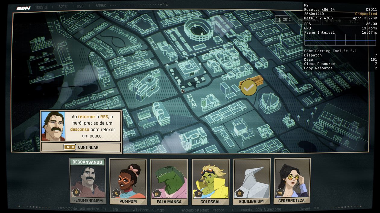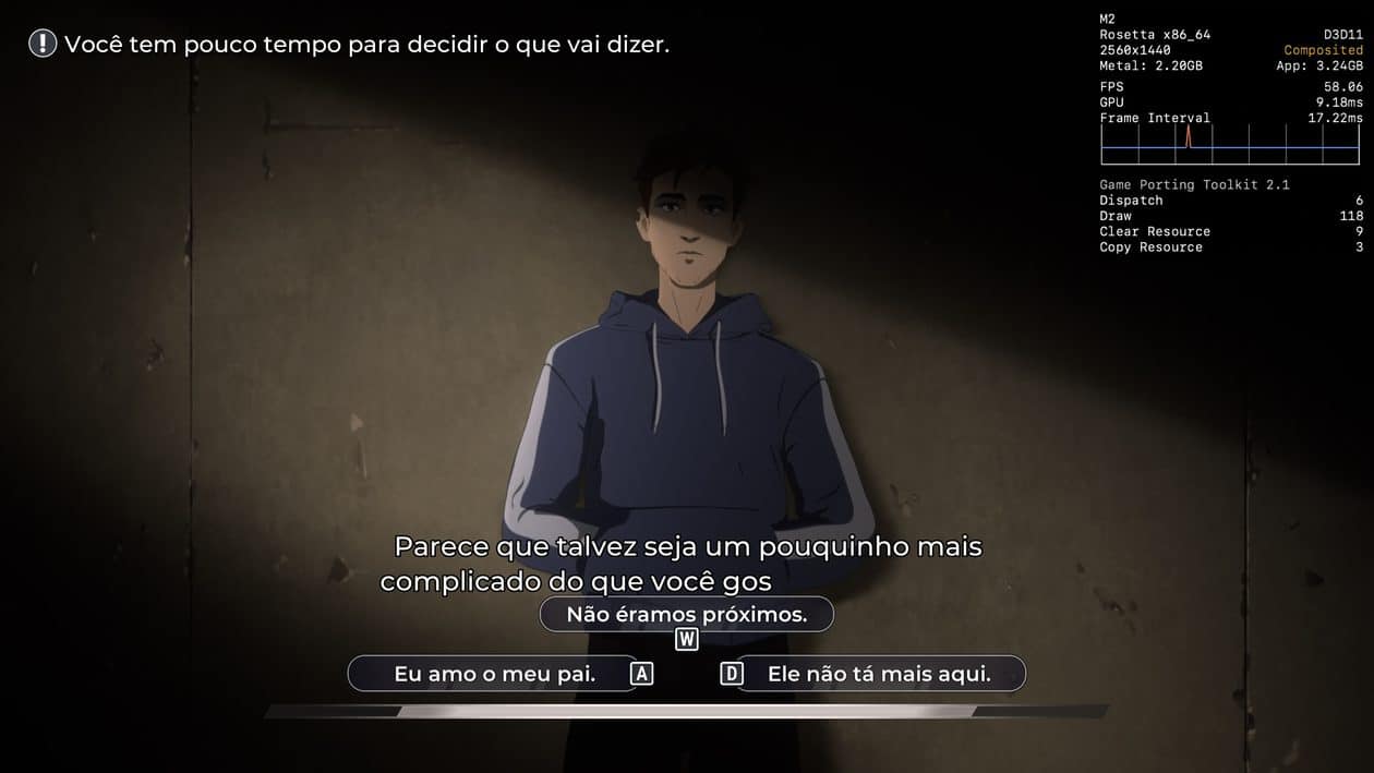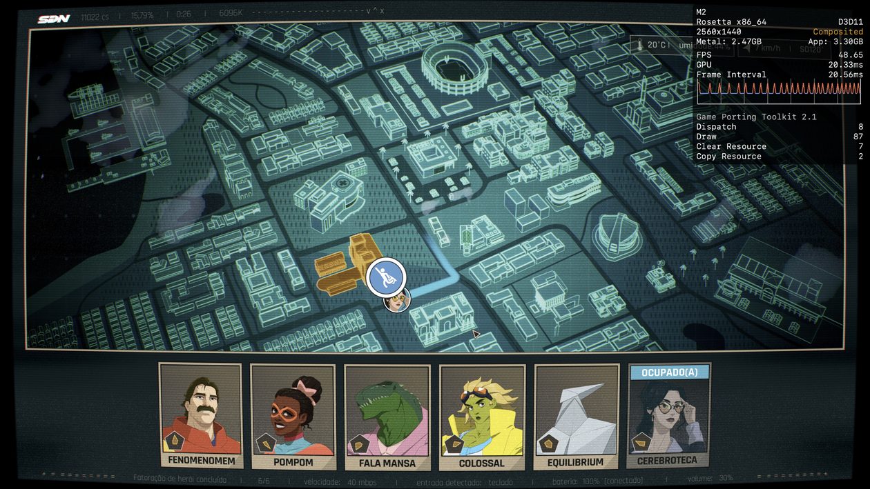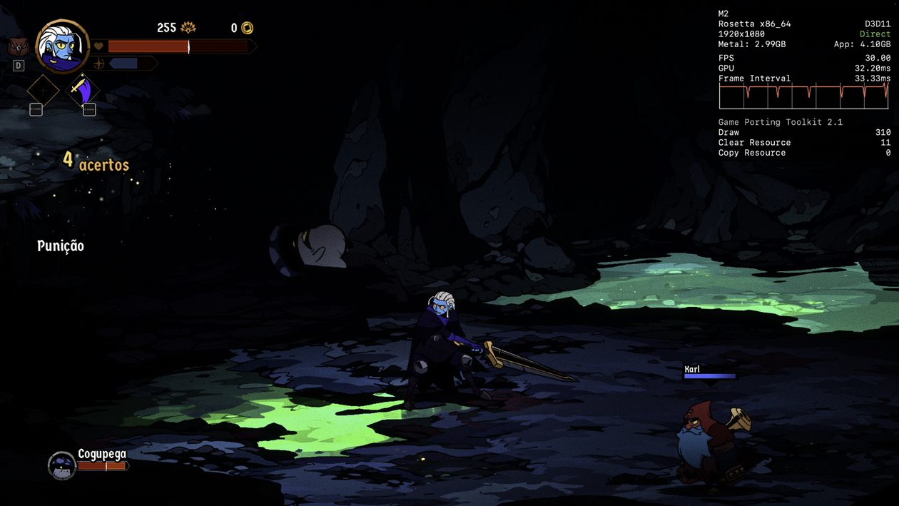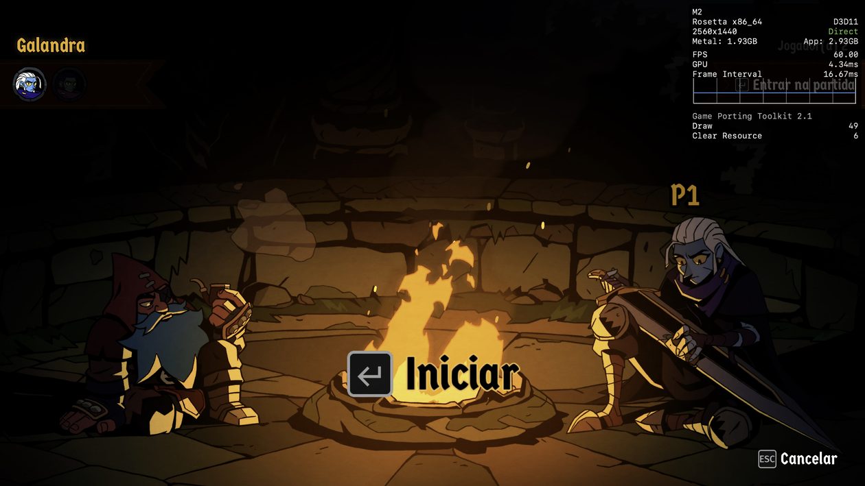 Se você tiver um Mac mais poderoso à disposição, provavelmente não terá problemas para alcançar os 60qps. No entanto, desconfio que, no meu caso, são os 8GB de memória que estão me custando alguns quadros durante a jogatina, e não o poder de fogo da CPU/GPU do chip M2.
