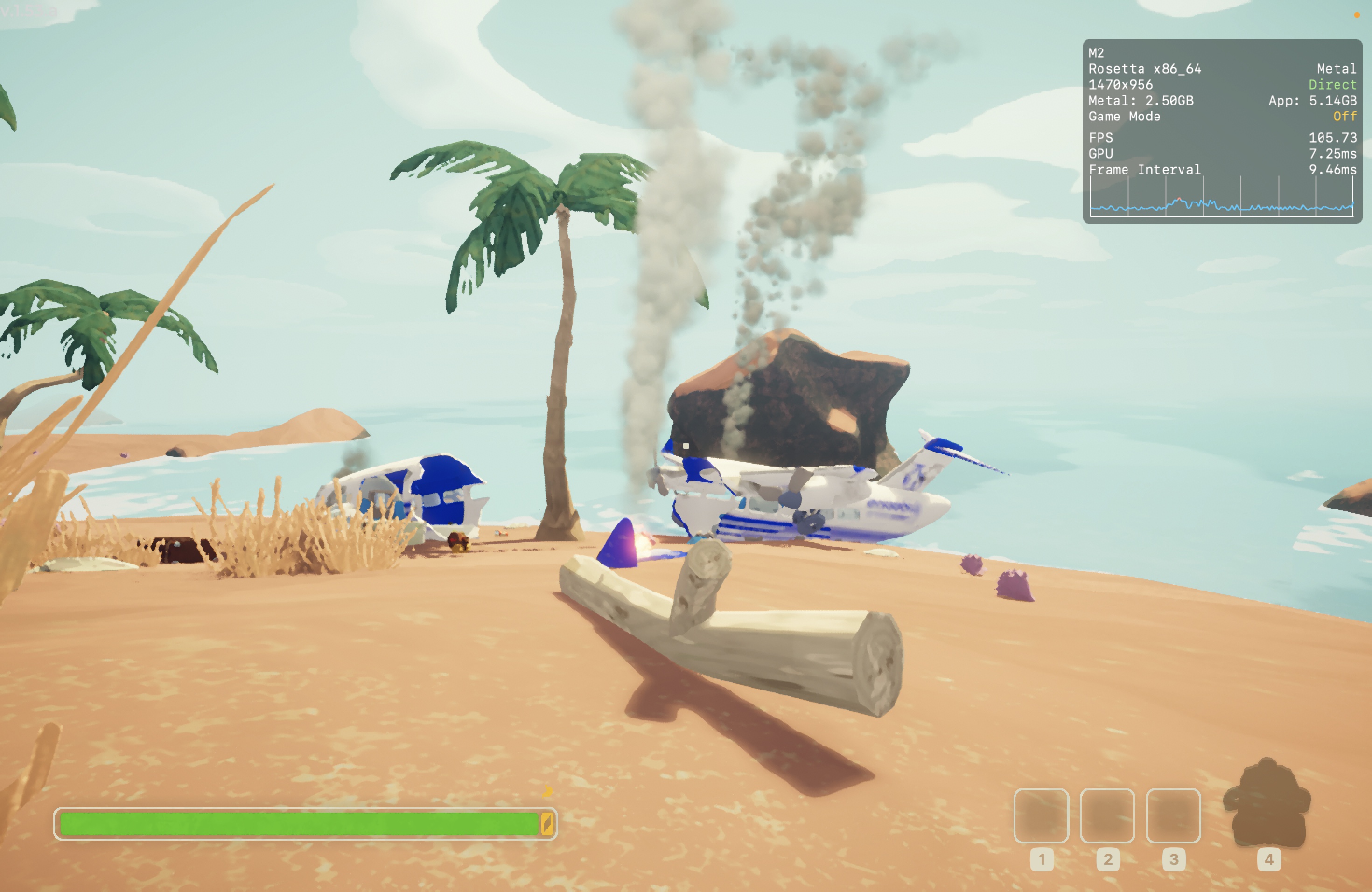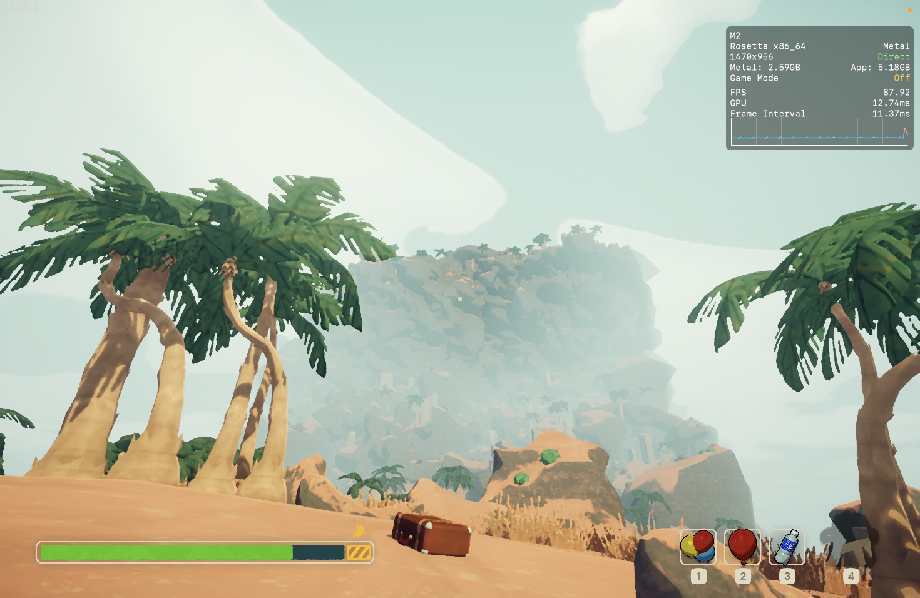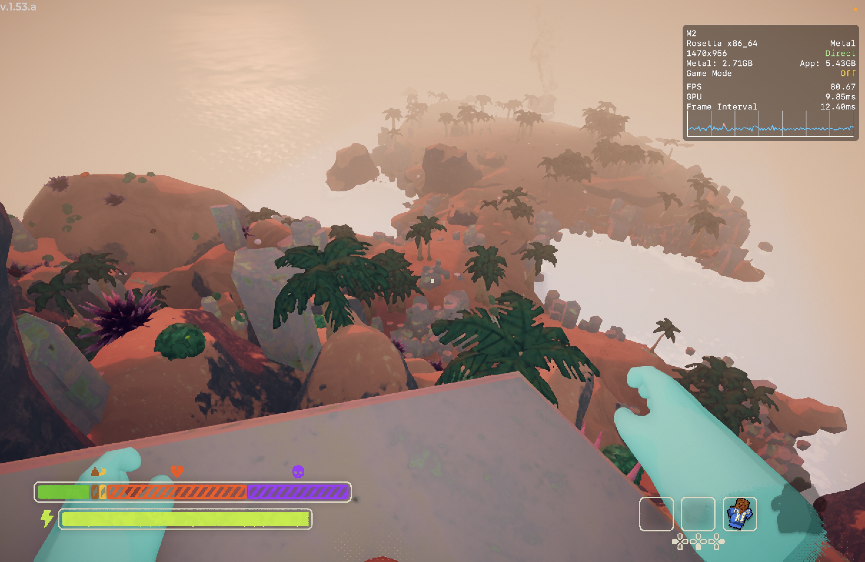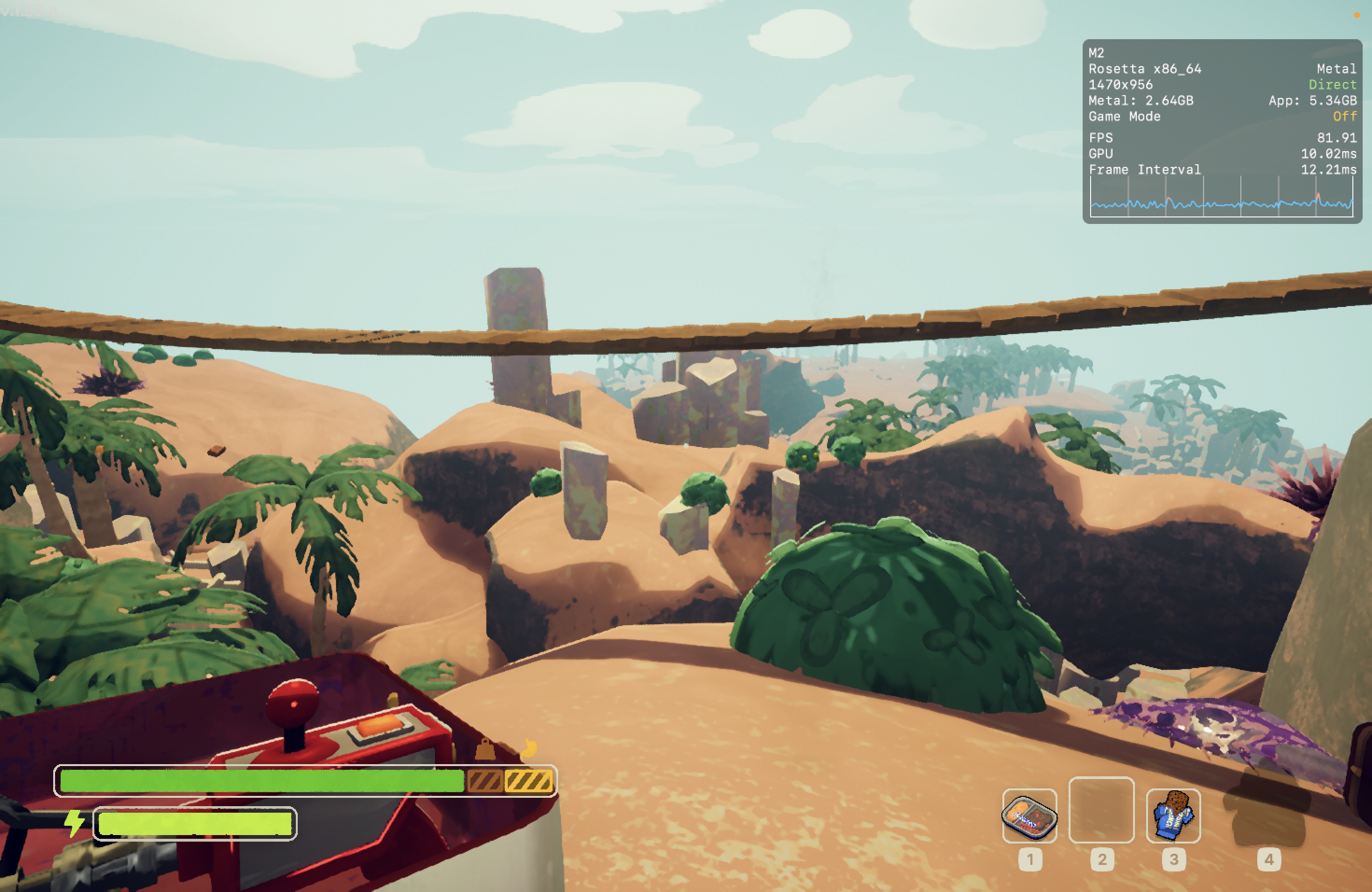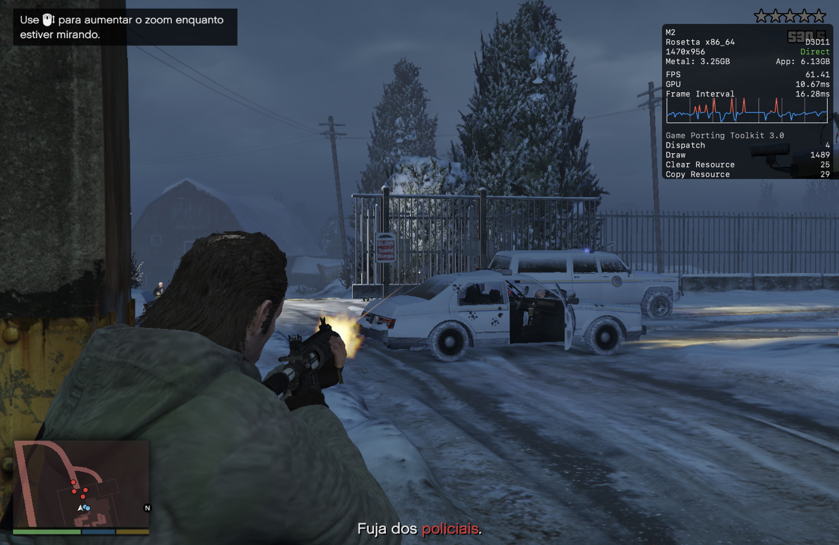 No meu Mac, o jogo rodou praticamente o tempo todo na casa dos 25-30qps, o que está longe de ser o ideal, mas ainda considero jogável pois o frame pacing não é ruim. Para tal, tive que reduzir as configurações gráficas ao máximo e colocar o jogo para rodar em 720p 2, além de selecionar o modo gráfico D3DMetal e o modo de sincronização MSync.