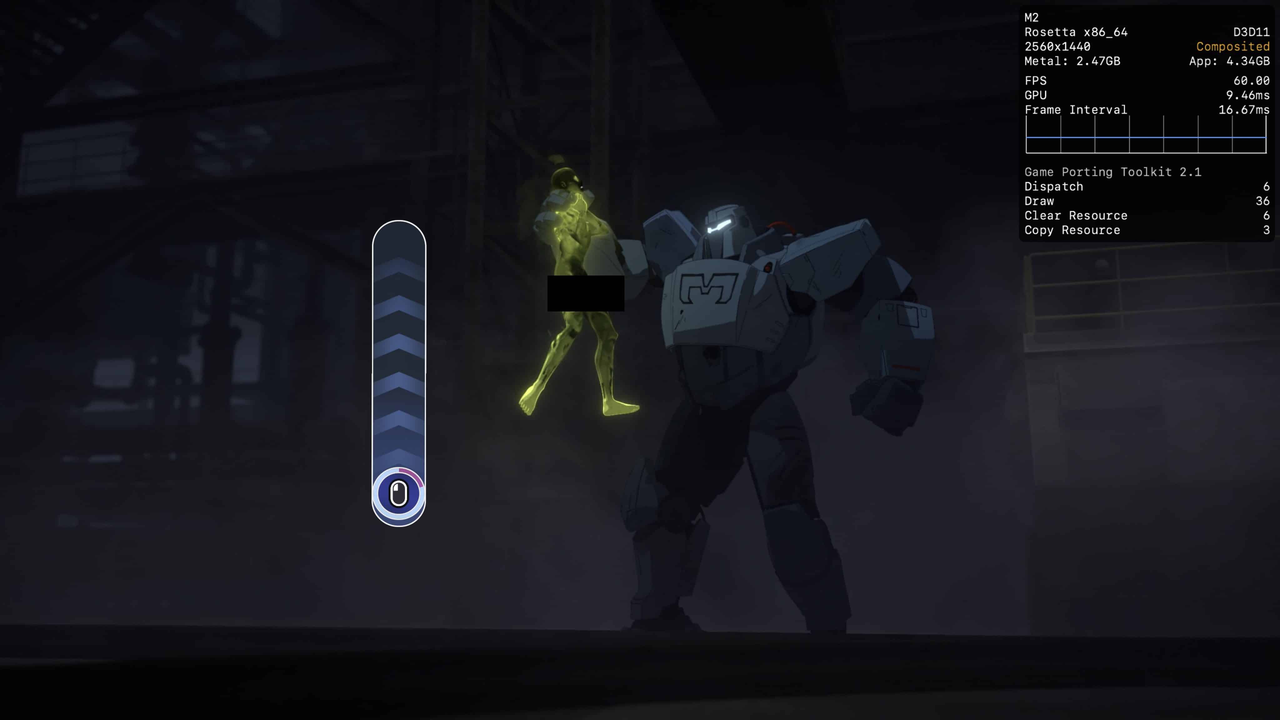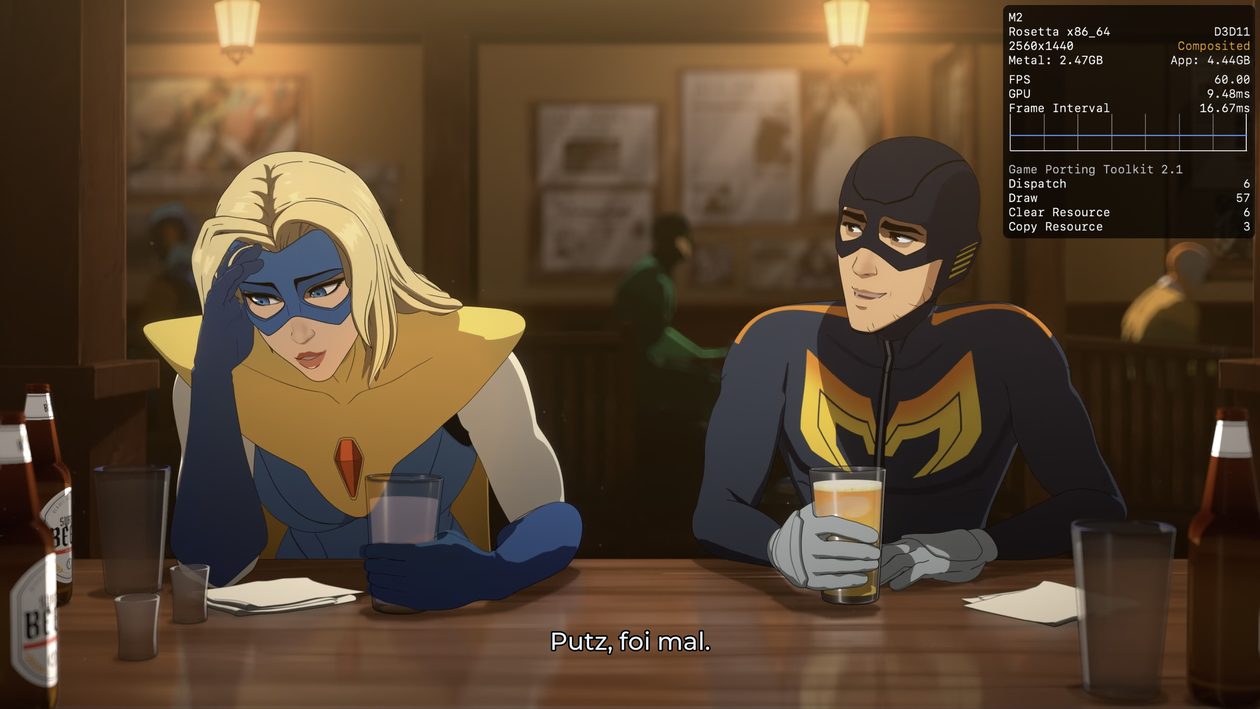Caso você esteja querendo jogar Dispatch mas só tem um Mac à disposição, recomendo utilizar o modo gráfico D3DMetal e o modo de sincronização MSync do CrossOver.