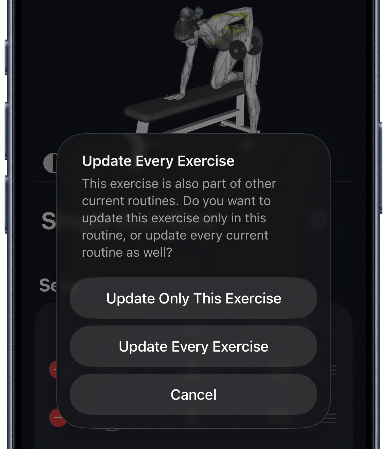 Por fim, agora usuários podem atualizar um único exercício em uma rotina ou em várias simultaneamente, facilitando a personalização dos treinos.