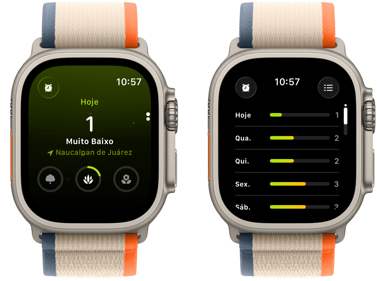 O aplicativo exibe informações separadas para pólen de árvores, grama e ervas daninhas, além de oferecer previsão para até cinco dias. A interface é muito bonita, limpa, intuitiva e segue um visual minimalista, o que facilita bastante o uso.