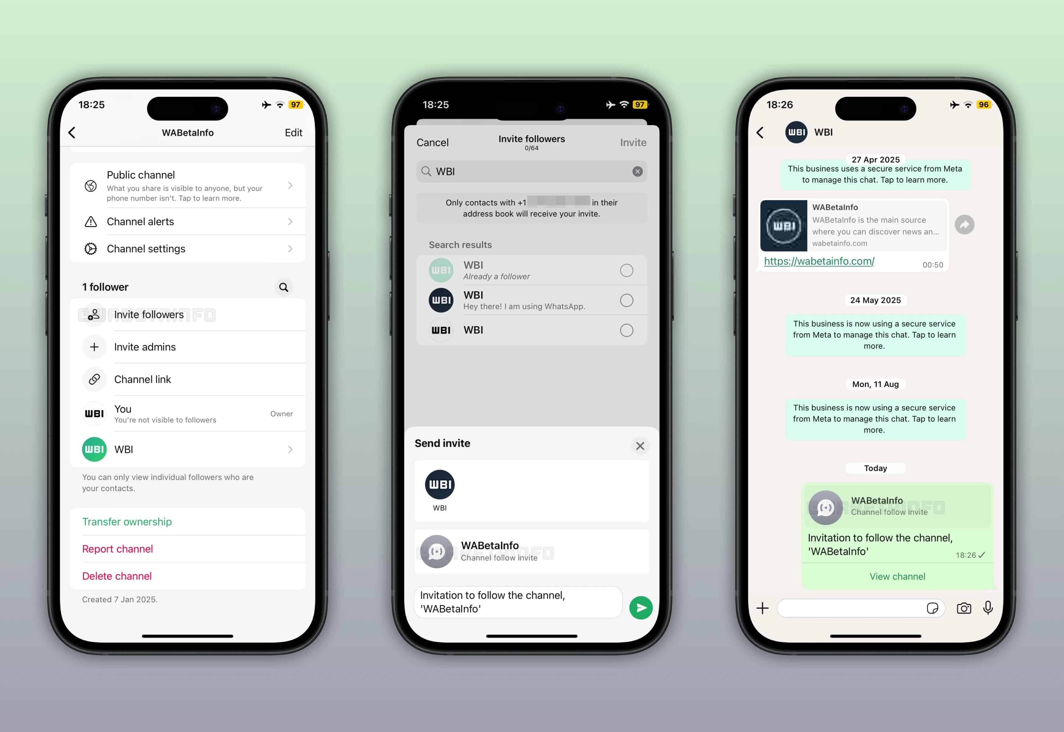 É possível selecionar até 64 contatos de uma vez, diretamente da tela de detalhes do canal. Os destinatários, que devem ter o número do admin em suas agendas, recebem um atalho semelhante ao já existente para grupos.