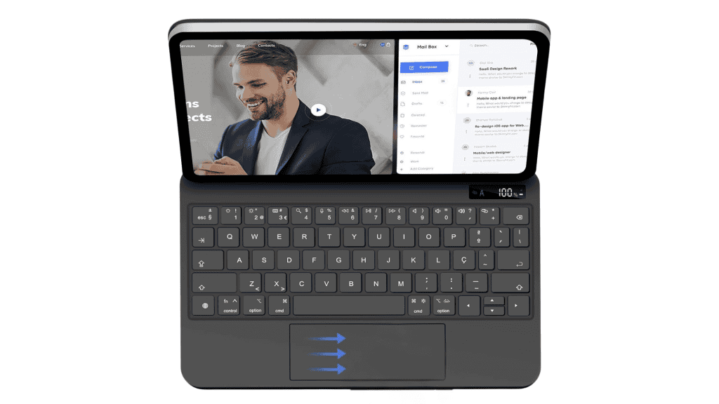 O principal objetivo desse tipo de capa é oferecer uma experiência de uso mais próxima à de um notebook. O teclado físico facilita a escrita de textos, mensagens e documentos, enquanto o trackpad permite navegar pela interface do iPadOS com mais precisão.