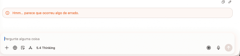 - Quem tenta usar o ChatGPT, não consegue completar uma solicitação. O chatbot demora ou não responde aos comandos, aparecendo a mensagem de erro acima.
