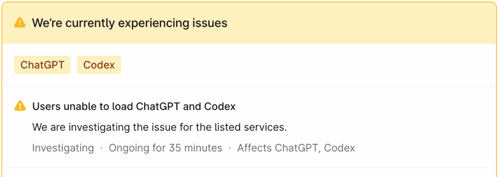 ⚠️ Usuários não conseguem carregar o ChatGPT e o Codex