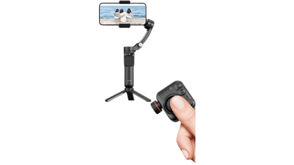 O modelo também possui estrutura dobrável, facilitando o transporte em mochilas ou bolsas. Essa característica é comum em gimbals voltados para uso portátil.