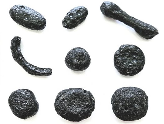 A superfície dos geraisitos é marcada por pequenas cavidades, vestígios de bolhas de gás que escaparam durante o resfriamento acelerado na atmosfera.