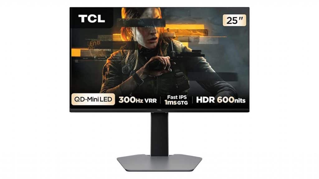O monitor de 25 polegadas funciona em resolução Full HD com uma taxa de atualização de 300 Hz. O painel utiliza as tecnologias QLED e Mini LED para o controle de luz e cores. O tempo de resposta é de 1 ms e o dispositivo aceita o sistema FreeSync para sincronizar os quadros durante os jogos.