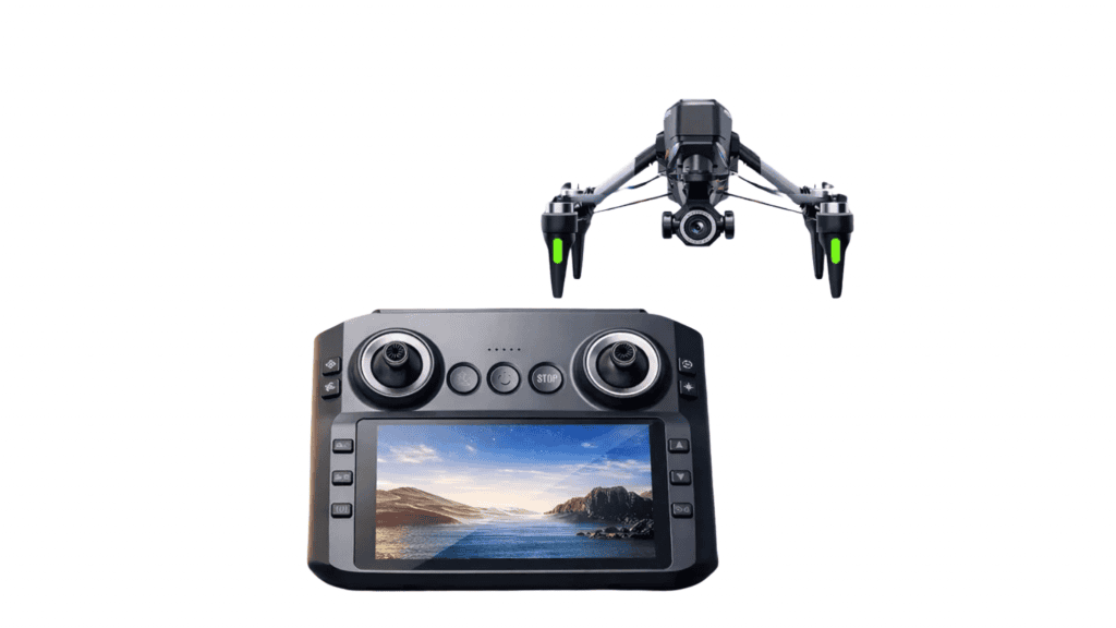 Entre os recursos adicionais estão evitação de obstáculos em 360°, motores brushless e estrutura dobrável, facilitando o transporte. O controle inclui tela integrada e transmissão de imagem em tempo real. O produto acompanha duas baterias, possibilitando maior tempo de uso.