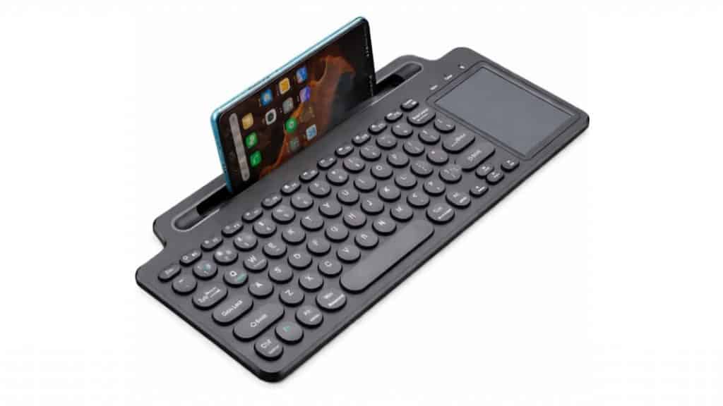 Este modelo é um teclado compacto com conexão via Bluetooth e touchpad integrado. Ele utiliza o padrão ABNT2, que inclui teclas específicas para o idioma português, como “ç”.
